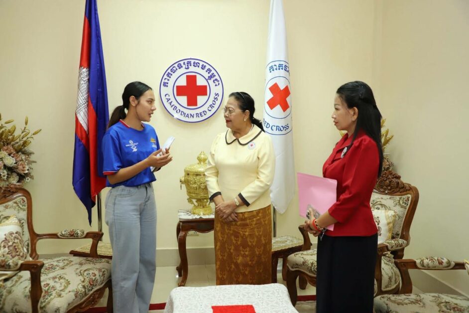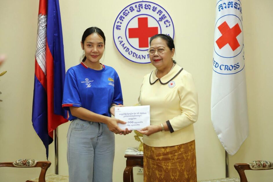 លោកជំទាវ ម៉ែន នារីសោភ័គ អគ្គលេខាធិការរងទី១ បានប្រគល់ថវិការបស់កាកបាទក្រហមកម្ពុជា ដែលមានសម្តេចកិត្តិព្រឹទ្ធបណ្ឌិត ប៊ុន រ៉ានី ហ៊ុនសែន ជាប្រធាន ជូន កីឡាការិនីគុនល្បុក្កតោ ពេជ្រ ចរណៃ ប្រធានសាលាគុនល្បុក្កតោជ័យតេជៈដែលរងគ្រោះដោយភ្លើងឆេះបំផ្លាញខ្ទេចខ្ទីទីតាំងដែលបានជួលគេដើម្បីបើកសាលាបង្ហាត់បង្រៀនគុនល្បុក្កតោកំពុងដំណើរបាន២ថ្ងៃ និងអាហារដ្ឋានដែលជិតបើកដំណើរការ ក្នុងសង្កាត់បឹងកក់២ ខណ្ឌទួលគោក រាជធានីភ្នំពេញ កាលពីវេលាម៉ោង ៨:៤៥ នាទីយប់ ថ្ងៃទី១៨ ខែមិថុនា ឆ្នាំ២០២៥ ។