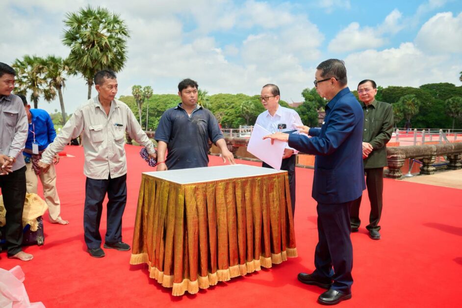 នៅព្រឹកថ្ងៃទី១១ ខែមេសា ឆ្នាំ២០២៥ សម្តេចមហាមន្ត្រី គុយ សុផល ឧបនាយករដ្ឋមន្ត្រី រដ្ឋមន្ត្រីក្រសួងព្រះបរមរាជវាំង ប្រធានគណៈកម្មាធិការជាតិរៀបចំបុណ្យជាតិអន្តរជាតិ និងជាប្រធានគណៈកម្មការរៀបចំព្រះរាជពិធីបួងសួងចម្រើនសេចក្តីសុខ ជូនដល់ព្រះរាជាណាចក្រកម្ពុជា បានអញ្ជើញពិនិត្យវឌ្ឍនភាពការងារនៅទីតាំងត្រៀមប្រារព្ធព្រះរាជពិធីបួងសួងចម្រើនសេចក្តី សុខជូនដល់ព្រះរាជាណាចក្រកម្ពុជា នៅខាងមុខប្រាសាទអង្គរវត្ត ខេត្តសៀមរាប ដែលព្រះរាជពិធីនេះនឹងមានការយាងជា ព្រះរាជាធិបតីដ៏ខ្ពង់ខ្ពស់បំផុត ព្រះករុណាព្រះបាទ សម្តេចព្រះបរមនាថ នរោត្តម សីហមុនី ព្រះមហាក្សត្រនៃ ព្រះរាជាណាចក្រកម្ពុជា។