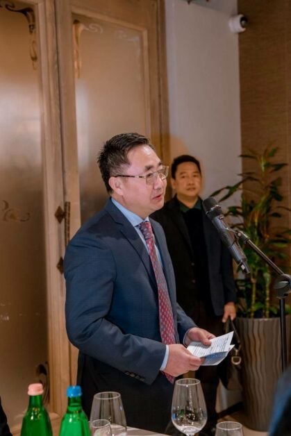 យុទ្ធសាស្ត្របញ្ចកោណ-ដំណាក់កាលទី១ មានបាវចនាចំនួន៥ និងមានអាទិភាពគន្លឹះចំនួន៥ ក្នុងការបន្តអនុវត្តនូវកម្មវិធីកែទម្រង់សំខាន់ៗ លើគ្រប់វិស័យ ក្នុងគោលដៅបម្រើឧត្តមប្រយោជន៍ជាតិ និងឆ្លើយតបទៅនឹងសំណូមពរ និងសេចក្តីត្រូវការរបស់ប្រជាជនមាន “កំណើន ការងារ សមធម៌ ប្រសិទ្ធភាព និងចីរភាព” និងមានអាទិភាពគន្លឹះចំនួន៥ គឺ “មនុស្ស ផ្លូវ ទឹក ភ្លើង និង បច្ចេកវិទ្យា” ជាពិសេសគឺ “បច្ចេកវិទ្យាឌីជីថល” ។សម្តេចប្រធានរដ្ឋសភា បានជម្រាបក្មួយៗសិស្សនិស្សិត អំពីដំណើរទស្សនកិច្ចរបស់សម្តេចមកកាន់ប្រទេសហុងគ្រីនេះ គឺក្នុងគោលបំណងពង្រឹង និងពង្រីកទំនាក់ទំនងទ្វេភាគីកម្ពុជា-ហុងគ្រី ឱ្យកាន់តែស៊ីជម្រៅបន្ថែមទៀត ដើម្បីនាំមកនូវផលប្រយោជន៍ជូនពលរដ្ឋ។ សម្តេចប្រធានរដ្ឋសភាមានក្តីសប្បាយរីករាយដែលបានឃើញ ក្មួយៗនិស្សិត កំពុងសិក្សានៅក្នុងប្រទេសហុងគ្រី ខិតខំសិក្សារៀនសូត្រ មានសាមគ្គី ភាពគ្នាល្អ ចេះយកអាសារគ្នាទៅវិញទៅមក។