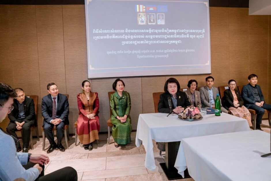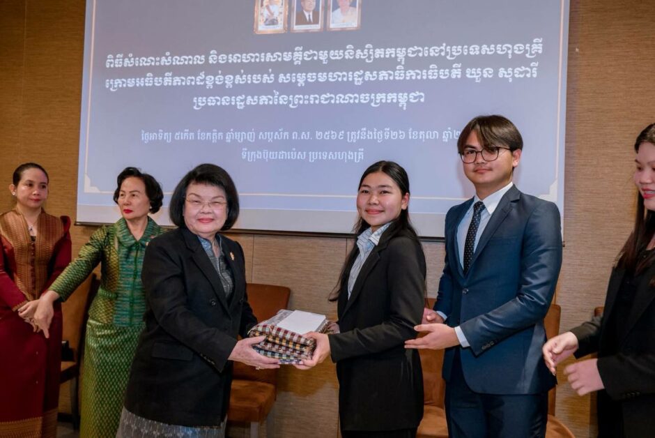 ឆ្លៀតនៅក្នុងឱកាសបំពេញទស្សនកិច្ចផ្លូវការ និងមិត្តភាពនៅក្នុងប្រទេសហុងគ្រី សម្តេចមហារដ្ឋសភា ធិការធិបតី ឃួន សុដារី ប្រធានរដ្ឋសភានៃព្រះរាជាណាចក្រកម្ពុជា បានអញ្ជើញជួបសំណេះសំណាល សាកសួរសុខទុក្ខ ជាមួយសិស្សនិស្សិតកម្ពុជា ដែលកំពុងសិក្សានៅក្នុងប្រទេសហុងគ្រី នារសៀលថ្ងៃទី២៦ ខែតុលា ឆ្នាំ២០២៥។