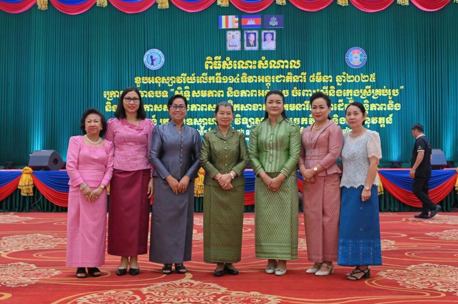 សម្តេចកិត្តិសង្គហបណ្ឌិត ម៉ែន សំអន ឧត្តមប្រឹក្សាផ្ទាល់ព្រះមហាក្សត្រ និងជាប្រធានសមាគមនារីកម្ពុជា ដើម្បីសន្តិភាព និងអភិវឌ្ឍន៍ បានអញ្ជើញជាអធិបតី ក្នុងពិធីអបអរសាទរ ទិវាអន្តរជាតិនារី ៨មិនា ខួបលើកទី ១១៤ ក្រោមប្រធានបទ សិទ្ធ សមភាព និងភាពអង់អាចចំពោះស្ត្រី និងក្មេងស្រីគ្រប់រូប អមជាមួយ នឹងកម្មវិធីប្រកាសគណៈកម្មការ សាខាសមាគមនារី កម្ពុជាដើម្បីសន្តិភាព និងអភិវឌ្ឍន៍ នៅក្រសួងឧស្សាហកម្ម វិទ្យាសាស្ត្រ បច្ចេកវិទ្យា និងនវានុវត្តន៍ ពិធីនេះផងដែរក៏មានការអញ្ជើញចូលរួមពី និងឯកឧត្តម ហែម វណ្ណឌី រដ្ឋមន្ត្រីក្រសួងឧស្សាហកម្ម វិទ្យាសាស្ត្រ បច្ចេកវិទ្យា និងនវានុវត្តន៍ និងលោកជំទាវ ដែលរៀបចំឡើង មជ្ឈមណ្ឌលសន្និបាត និងពិព័រណ៌អន្តរជាតិជ្រោយចង្វា OCIC កាលពីរសៀលថ្ងៃទី៥ ខែមីនា ឆ្នាំ២០២៥។