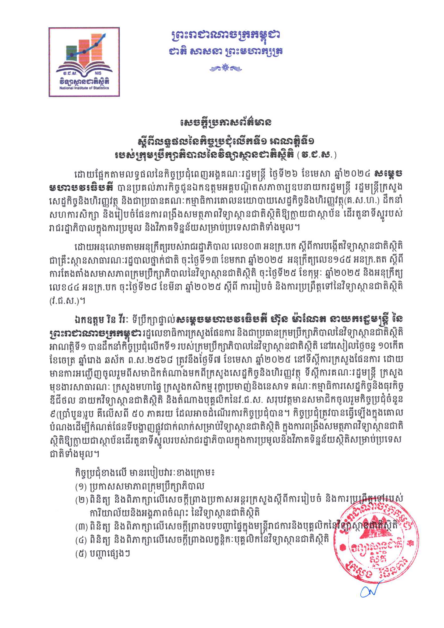 សេចក្តីប្រកាស់ព័ត៌មាន ស្តីពីលទ្ធផលនៃកិច្ចប្រជុំលើកទី១ អាណត្តិទី១ របស់ក្រុមប្រឹក្សាភិបាលនៃ វិទ្យាស្ថានជាតិស្ថិតិ (វ.ជ.ស.)