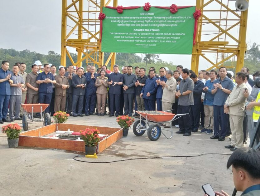 ស្ពានខ្ពស់ជាងគេនៅកម្ពុជា បានចាក់បេតុងតភ្ជាប់មុខតំណរប្រសព្វគ្នាត្រៀមបើកឲ្យធ្វើចរាចរណ៍ ឆ្លងកាត់បណ្ដោះអាសន្ន នៅមុនថ្ងៃបុណ្យចូលឆ្នាំថ្មីប្រពៃណីជាតិខ្មែរ ២០២៥នេះ
