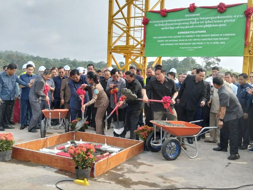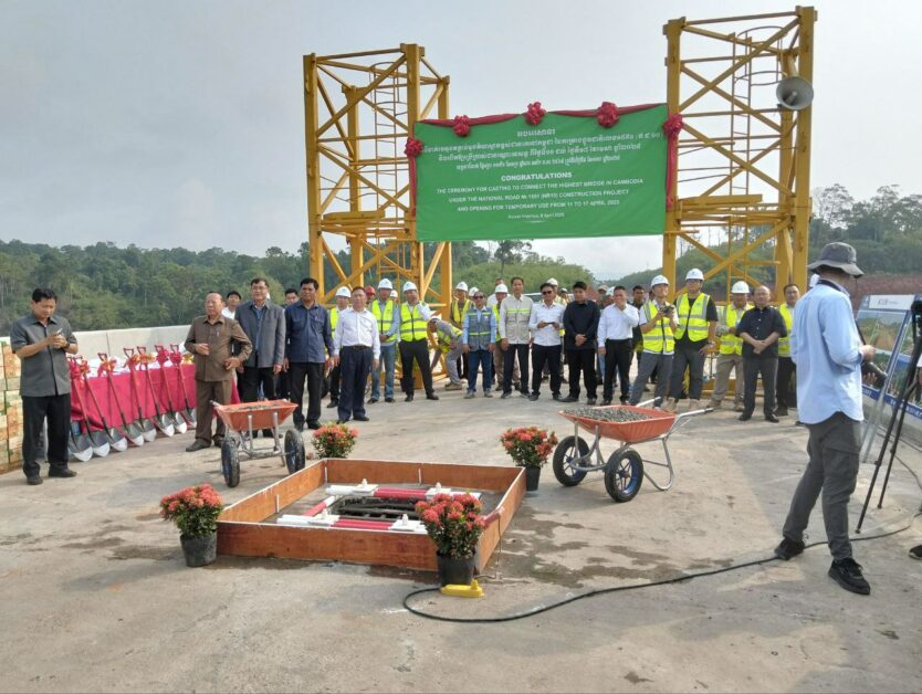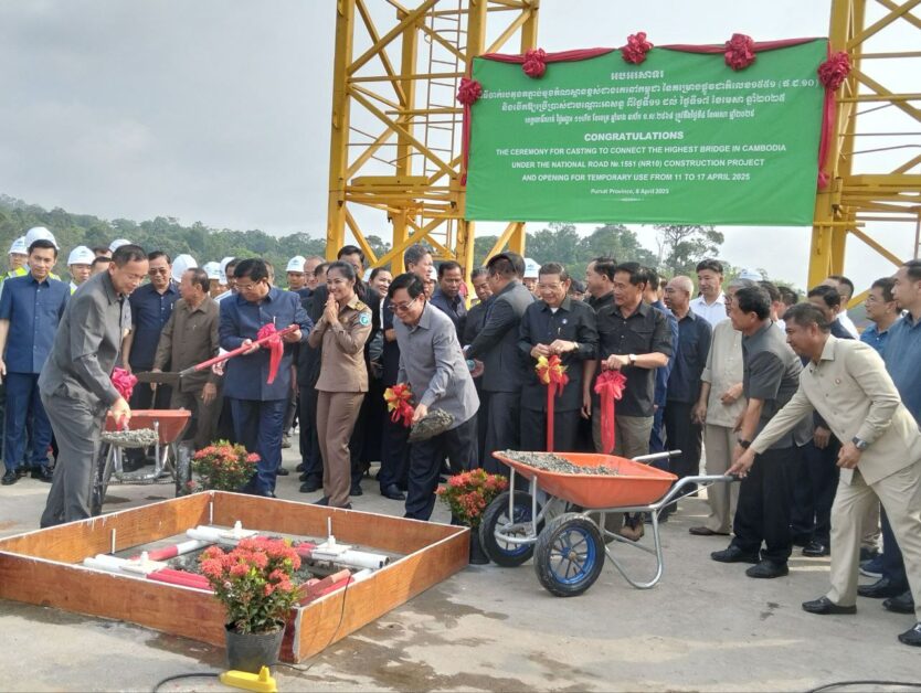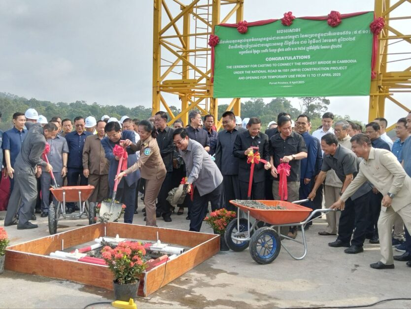 ស្ពានខ្ពស់ជាងគេនៅកម្ពុជា បានចាក់បេតុងតភ្ជាប់មុខតំណរប្រសព្វគ្នាត្រៀមបើកឲ្យធ្វើចរាចរណ៍ ឆ្លងកាត់បណ្ដោះអាសន្ន នៅមុនថ្ងៃបុណ្យចូលឆ្នាំថ្មីប្រពៃណីជាតិខ្មែរ ២០២៥នេះ