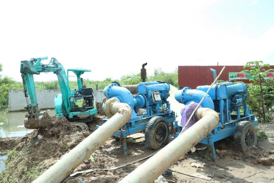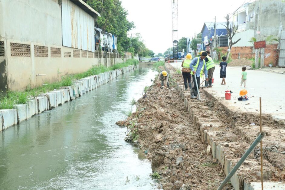 អភិបាលរាជធានីភ្នំពេញ ដឹកនាំមន្ត្រីជំនាញ និងអាជ្ញាធរខណ្ឌចុះពិនិត្យស្ថានភាពទឹកលិច និងការស្ថាបនាជញ្ជាំងប្រឡាយបេតុងនៅក្នុងមូលដ្ឋានខណ្ឌចំនួន ៤