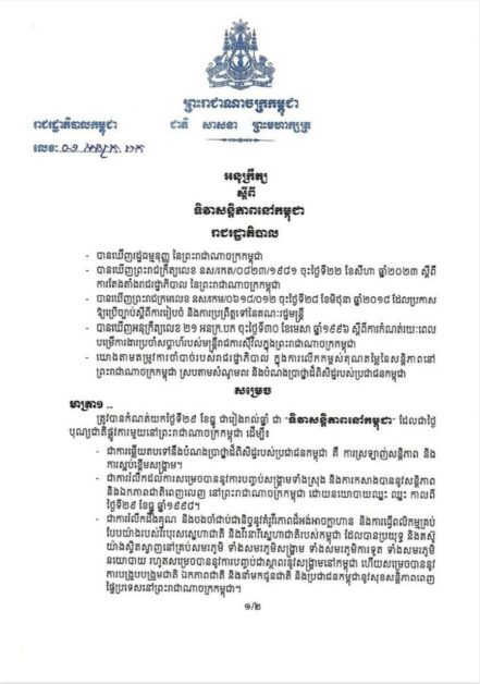 ឆ្នាំ២០២៤នេះគឺជាឆ្នាំដែលត្រូវប្រារព្ធខួបលើកទី២៦ នៃការបញ្ចប់សង្គ្រាមសុីវិលនៅកម្ពុជា និងការអនុវត្តប្រកបដោយជោគជ័យនយោបាយឈ្នះ ឈ្នះ ហើយដែលសម្រាប់ខួបលើកទី២៦ឆ្នាំ២០២៤នេះ និងសម្រាប់ខួបលើកក្រោយជាបន្តបន្ទាប់រៀងរាល់ឆ្នាំ ត្រូវបានរាជរដ្ឋាភិបាលកម្ពុជាចេញអនុក្រឹត្យលេខ ០១អនក្រ.បក ចុះថ្ងៃទី០១ ខែមករា ឆ្នាំ២០២៤ កំណត់ជា«ទិវាសន្តិភាពនៅកម្ពុជា»ជាថ្ងៃបុណ្យជាតិផ្លូវការមួយនៅព្រះរាជាណាចក្រកម្ពុជា។