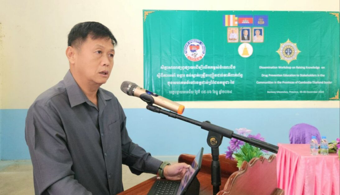 បន្ទាយមានជ័យ: ឧត្តមសេនីយ៍ឯក នាក់ យុទ្ធា ប្រធានលេខាធិការដ្ឋាននៃគណៈកម្មាធិការសម្របសម្រួល ជំរុញ អនុវត្ត និងត្រួតពិនិត្យការងារប្រយុទ្ធប្រឆាំងគ្រឿងញៀនក្រសួងមហាផ្ទៃនិងជាអគ្គលេខាធិការរងនៃអាជ្ញាធរជាតិប្រយុទ្ធប្រឆាំងគ្រឿងញៀនថ្លែងបែបនេះពេលផ្តល់ធាតុចូលក្នុងសិក្ខាសាលាផ្សព្វផ្សាយដើម្បីលើកកម្ពស់ចំណេះដឹងស្តីពីការអប់រំ បង្ការ ទប់ស្កាត់គ្រឿងញៀនដល់ភាគីពាក់ព័ន្ធក្នុងសហគមន៍នៅខេត្តជាប់ព្រំដែនកម្ពុជា ថៃ ដោយមានការអញ្ជើញចូលរួមពីអាជ្ញាធរមូលដ្ឋានគ្រប់ថ្នាក់ មេឃុំ មេភូមិ និងអ្នកពាក់ព័ន្ធទូទាំងស្រុកម៉ាឡៃ នាថ្ងៃទី៥ ខែធ្នូ ឆ្នាំ២០២៤។