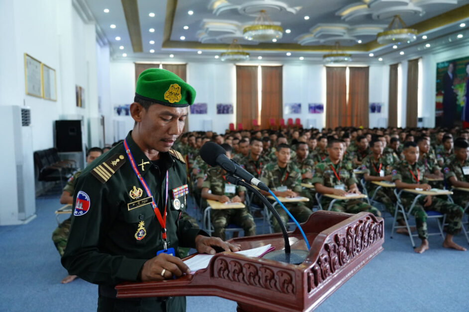ឧត្តមសេនីយ៍ឯក យិន ច័ន្ទធួន អញ្ជើញធ្វេីបទឧទ្ទេសនាមជូនសិក្ខាកាម នៅមជ្ឈមណ្ឌលហ្វឹកហ្វឺនភ្នំស្រង់ ខេត្តកំពង់ស្ពឺ (ស្តីពីភាពជាអ្នកដឹកនាំនិងគ្រប់គ្រង)