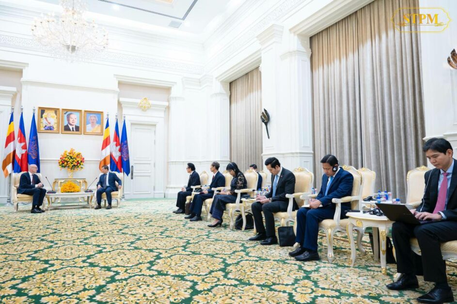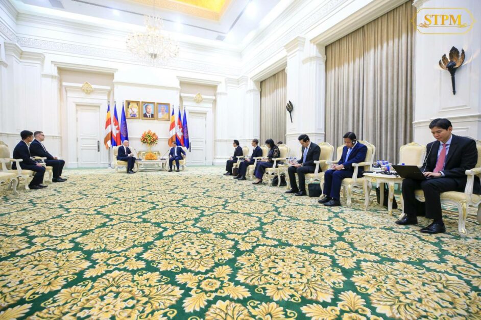 សម្ដេចបវរធិបតី និងឯកឧត្តមឯកអគ្គរាជទូតបានកត់សម្គាល់ដោយការពេញចិត្តចំពោះការដាក់ចេញនូវយន្តការពិគ្រោះយោបល់ទេ្វភាគីរវាងក្រសួងការបរទេស នៃប្រទេសទាំងពីរ ដែលចូលរួមចំណែកដល់ការរីកចម្រើននៃកិច្ចសហប្រតិបត្តិការរវាងប្រទេសទាំងពីរ។ សម្តេចបវរធិបតី និងឯកឧត្តមអគ្គរាជទូតក៏បានពិភាក្សាអំពីការបន្តពង្រឹង និងពង្រីកកិច្ចសហប្រតិបត្តិការរវាងប្រទេសទាំងពីរ ជាពិសេសលេីវិស័យពាណិជ្ជកម្ម និងវិនិយោគ។