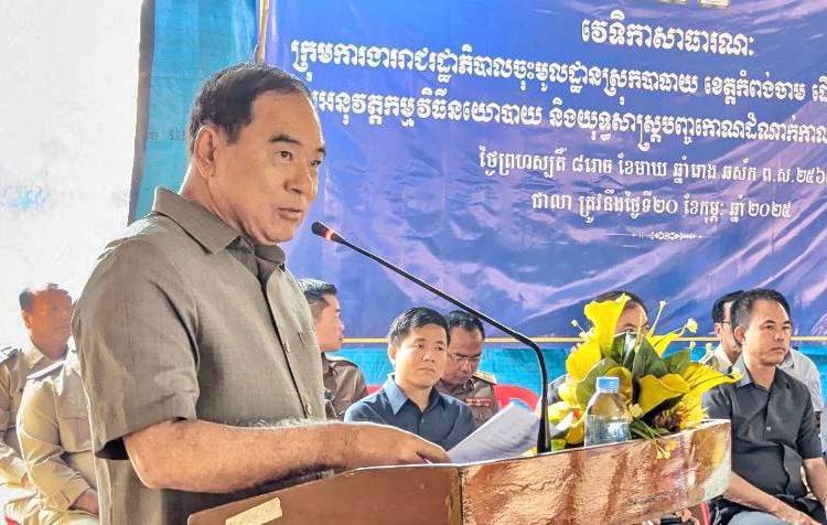 (កំពង់ចាម) ព្រឹកថ្ងៃទី២០ ខែកុម្ភៈ ឆ្នាំ២០២៥ តាងនាម ឯកឧត្តមសន្តិបណ្ឌិត នេត សាវឿន ឧបនាយករដ្ឋមន្ត្រី និងជាប្រធានក្រុមការងាររាជរដ្ឋាភិបាលចុះមូលដ្ឋានខេត្តកំពង់ចាម ឯកឧត្ដមទេសរដ្ឋមន្រ្តី លី ធុជ ប្រធានក្រុមការងាររាជរដ្ឋាភិបាលចុះមូលដ្ឋានស្រុកបាធាយ ខេត្តកំពង់ចាម បានអញ្ជើញដឹកនាំវេទិកាសាធារណៈ និងជួបសំណេះសំណាលជាមួយមន្រ្តីរាជការ និងប្រជាពលរដ្ឋស្ថិតក្នុងឃុំជាលា ស្រុកបាធាយ ខេត្តកំពង់ចាម។