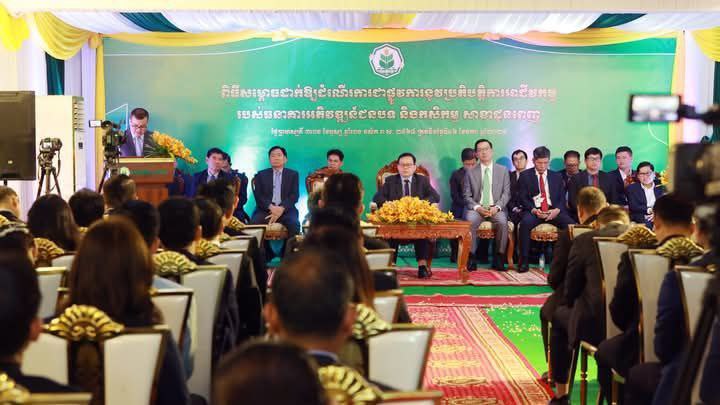ពិធីសម្ពោធនេះ ក្រោមវត្តមាន ឯកឧត្តម រស់ សីលវ៉ា រដ្ឋលេខាធិការ និងជាតំណាងដ៏ខ្ពង់ខ្ពស់ឯកឧត្តមអគ្គបណ្ឌិតសភាចារ្យ អូន ព័ន្ធមុនីរ័ត្ន ឧបនាយករដ្ឋមន្ត្រី រដ្ឋមន្ត្រីក្រសួងសេដ្ឋកិច្ច និងហិរញ្ញវត្ថុ,ឯកឧត្តម សុន គន្ធរ រដ្ឋមន្ត្រីប្រតិភូអមនាយករដ្ឋមន្ត្រី,លោក ជ ដារិទ្ធ នាយកសាខា ធនាគារជាតិនៃកម្ពុជាតំណាងលោកជំទាវបណ្ឌិត ជា សិរី អគ្គទេសាភិបាលធនាគារជាតិនៃកម្ពុជា សមាជិកក្រុមប្រឹក្សាភិបាលនៃធនាគារអភិវឌ្ឍន៍ជនបទ និងកសិកម្ម ដែលសរុបចំនួន ១៥០នាក់។