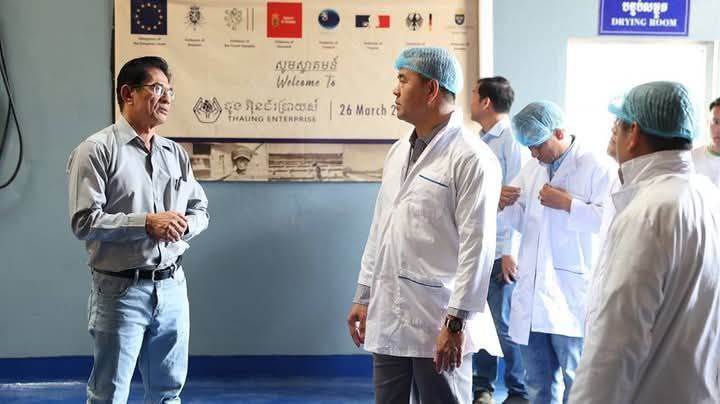 ខេត្តកំពត៖ នៅព្រឹក ថ្ងៃទី០២ ខែកុម្ភ: ឆ្នាំ២០២៥, ឯកឧត្តមបណ្ឌិត កៅ ថាច ប្រតិភូរាជរដ្ឋាភិបាលទទួលបន្ទុក ជាអគ្គនាយក ធនាគារអភិវឌ្ឍន៍ជនបទ និងកសិកម្ម ព្រមទាំងសហការី បានអញ្ជើញចុះជួបសំណេះសំណាល និងពិនិត្យមើលខ្សែច្រវាក់ផលិតកម្មកែច្នៃអំបិលរបស់ សហគ្រាស ថូង អុិនធ័រប្រាយស៍ ដែលផលិត និងកែច្នៃអំបិលធម្មជាតិ ប្រកបដោយស្តង់ដារសុវត្ថិភាព និងមានសម្គាល់ភូមិសាស្ត្រទំនិញ GI កំពត-កែប សម្រាប់បម្រេីទីផ្សារក្នុងស្រុក និងនំាចេញទៅកាន់ទីផ្សារក្រៅប្រទេស ពិសេសទៅសហគមន៍អុឺរ៉ុប។