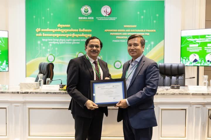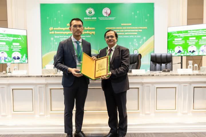 ភ្នំពេញ៖ឯកឧត្តមបណ្ឌិត កៅ ថាច ប្រតិភូរាជរដ្ឋាភិបាលទទួលបន្ទុកជា អគ្គនាយកធនាគារអភិវឌ្ឍន៍ជនបទ និងកសិកម្ម ARDB នៅថ្ងៃទី១៨ខែមេសាឆ្នាំ២០២៥នេះ បានអញ្ជើញប្រកាសបើកសិក្ខាសាលាស្តីអំពីការលើកកម្ពស់ហិរញ្ញប្បទានបៃតង និងចីរភាព មាគ៌ា និងកាលានុវត្តភាពសម្រាប់គ្រឹះស្ថានហិរញ្ញវត្ថុដែលរៀបចំឡើងនៅទីស្នាក់ការកណ្តាលរបស់ធនាគារ ARDB ស្ថិតនៅសង្កាត់ព្រែកលៀប ខណ្ឌជ្រោយចង្វាររាជធានីភ្នំពេញ។