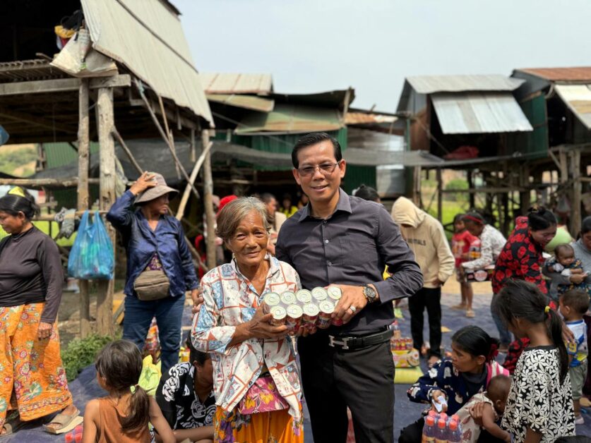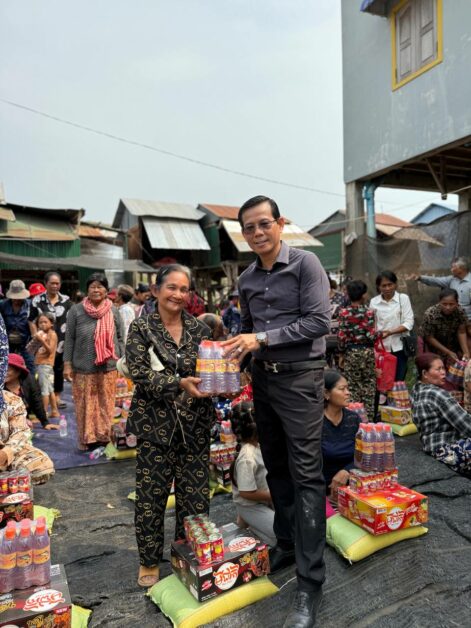 ព្រមទាំងអញ្ជើញចែកអំណោយជាគ្រឿងបរិភោគចំនួន៦០គ្រួសារ ដល់ចាស់ជរា ស្រ្តីមេម៉ាយងាយរងគ្រោះ ទាំងអស់នេះជាការចូលរួមចំណែក ដើម្បីជួយសម្រាល បន្ទុកនៃការរស់នៅរយៈពេលខ្លី ក្នុងនោះមួយគ្រួសារទទួលបាន អង្ករ១០គីឡូ មីមួយកេះ ត្រីខមួយស៊ុង និងទឹកត្រីមួយយួរ៕