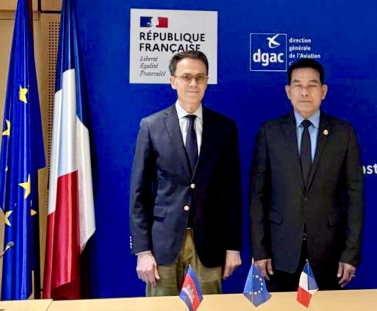 ឯកឧត្តមបណ្ឌិត ម៉ៅ ហាវណ្ណាល់ រដ្ឋមន្ត្រីទទួលបន្ទុករដ្ឋលេខាធិការដ្ឋានអាកាសចរណ៍ស៊ីវិល និង លោក Damien Caze អគ្គនាយកនៃអាជ្ញាធរអាកាសចរណ៍ស៊ីវាលបារាំង បានជួបប្រជុំគ្នាដើម្បីបន្តជំរុញកិច្ចសហប្រតិបត្តិការវិស័យអាកាសចរណ៍ស៊ីវិលនៃប្រទេសទាំងពីរ កម្ពុជា បារាំង,