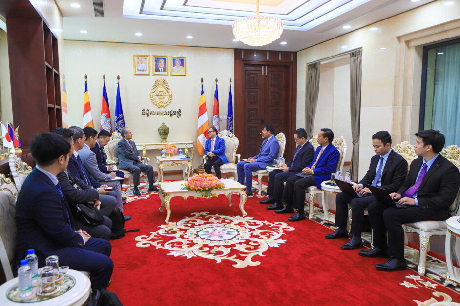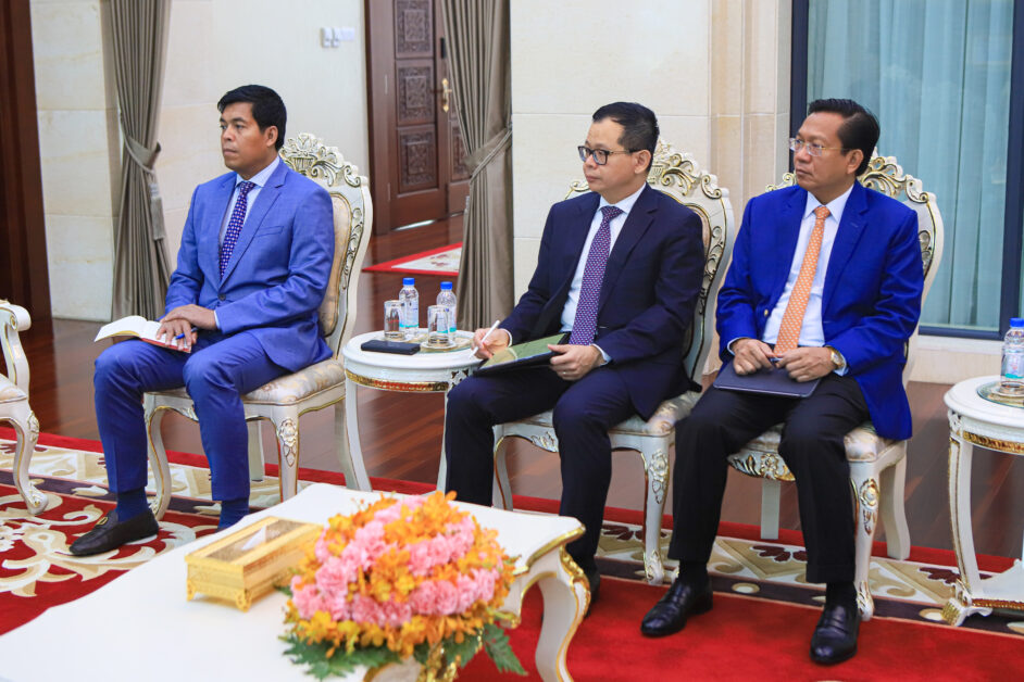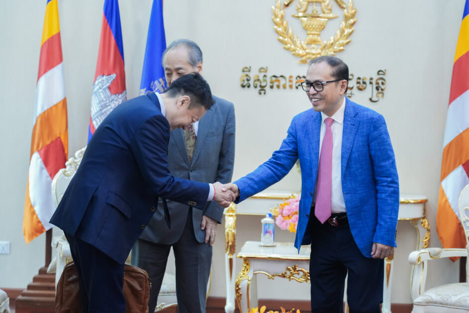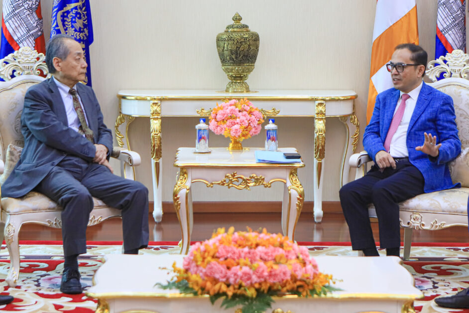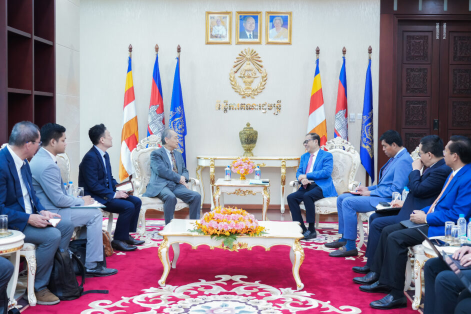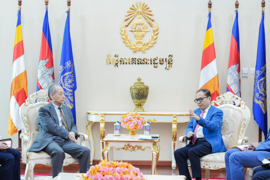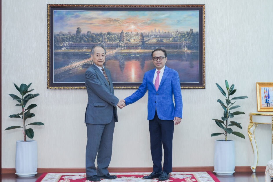 (ភ្នំពេញ)៖ នាព្រឹកថ្ងៃទី០១ ខែមេសា ឆ្នាំ២០២៥ ឯកឧត្តម វង្សី វិស្សុត ឧបនាយករដ្ឋមន្ត្រីប្រចាំការ និងជារដ្ឋមន្ត្រីទទួលបន្ទុកទីស្តីការគណៈរដ្ឋមន្ត្រី បានអនុញ្ញាតឱ្យឯកឧត្តម Takahashi Fumiaki ប្រធានសមាគមជប៉ុន-កម្ពុជា ចូលជួបសម្តែងការគួរសម និងពិភាក្សាការងារ ដោយមានការចូលរួមផងដែលពីសំណាក់វិនិយោគិនជប៉ុនមួយចំនួន ដែលកំពុងធ្វើការវិនិយោគនៅកម្ពុជា ក្នុងវិស័យ កសិកម្ម កសិឧស្សាហកម្ម វារីវប្បកម្ម ពាណិជ្ជកម្ម និងបច្ចេកវិទ្យា។
