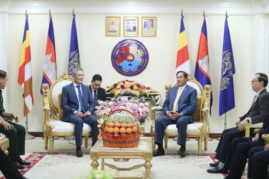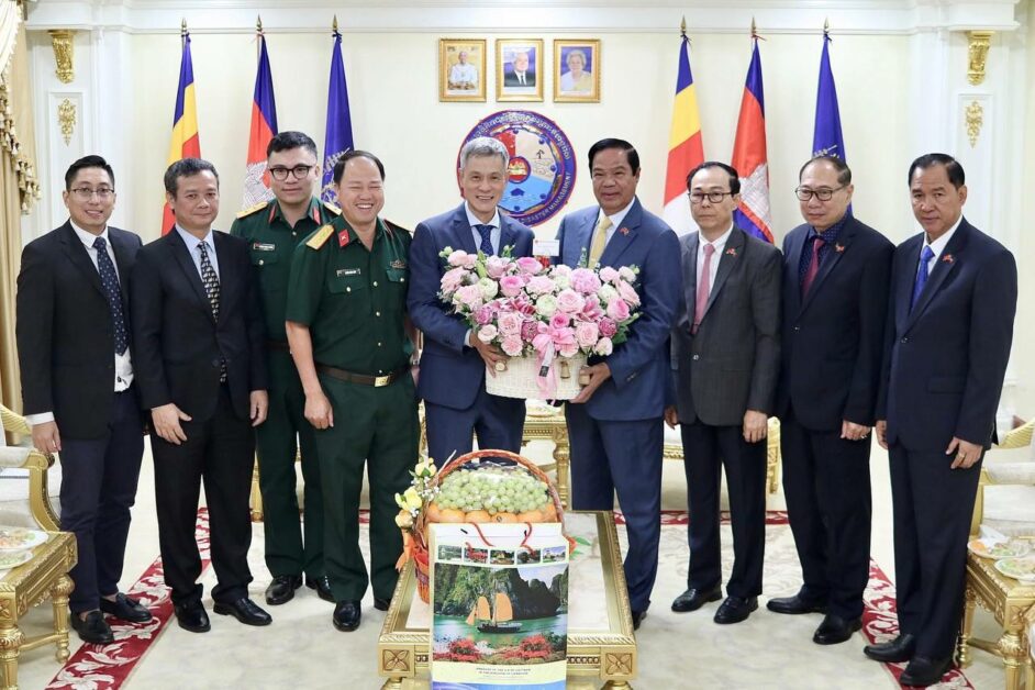 ភ្នំពេញ៖ នៅរសៀលថ្ងៃទី២ ខែមេសា ឆ្នាំ២០២៥ ឯកឧត្តមកិត្តិសង្គហបណ្ឌិត គន់ គីម ទេសរដ្ឋមន្រ្តី អនុប្រធានទី១ គណៈកម្មាធិការជាតិគ្រប់គ្រងគ្រោះមហន្តរាយ និង ឯកឧត្តម ង្វៀន មីញវូ ឯកអគ្គរដ្ឋទូតសាធារណរដ្ឋសង្គមនិយមវៀតណាមប្រចាំកម្ពុជា និងលោកវរសេនីយ៍ឯក ជិន វ៉ន់តឹម នាយការិយាល័យអនុព័ន្ធយោធាវៀតណាម ចូលជួបជូនពរក្នុងឱកាសបុណ្យចូលឆ្នាំថ្មីប្រពៃណីជាតិខ្មែរនាពេលខាងមុខ និងពិភាក្សាការងារ។