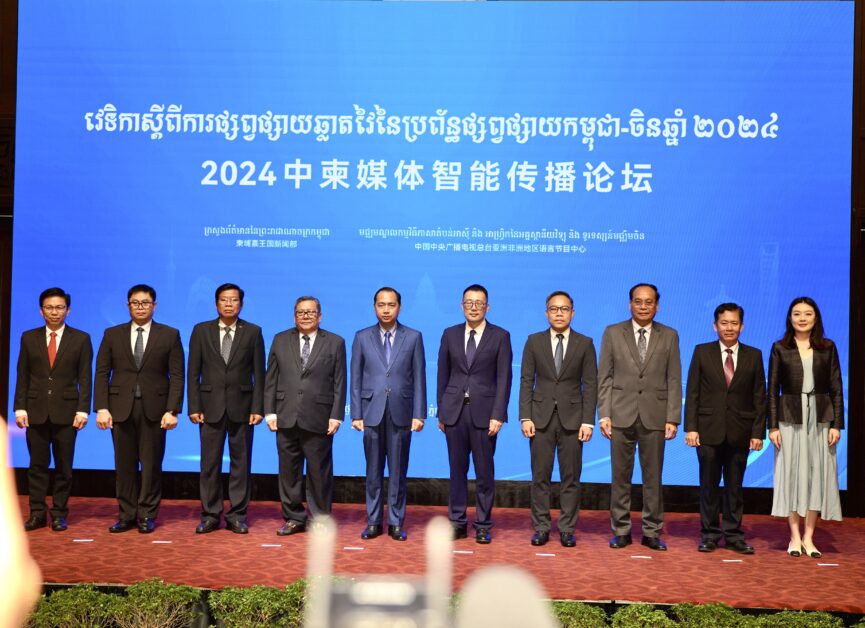 នេះជាការថ្លែងរបស់ ឯកឧត្ដម នេត្រ ភក្ត្រា រដ្ឋមន្ត្រីក្រសួងព័ត៌មាន ក្នុងឱកាសអញ្ជើញជាអធិបតីបើកវេទិកាស្តីពីការផ្សព្វផ្សាយឆ្លាតវៃនៃប្រព័ន្ធផ្សព្វផ្សាយកម្ពុជា-ចិនឆ្នាំ ២០២៤ រៀបចំដោយក្រសួងព័ត៌មានកម្ពុជា និងមជ្ឈមណ្ឌលកម្មវិធីភាសាតំបន់អាស៊ី និង អាហ្វ្រិកនៃអគ្គស្ថានីយវិទ្យុ និងទូរទស្សន៍មជ្ឈិមចិន នៅព្រឹកថ្ងៃទី១៣ ខែធ្នូ ឆ្នាំ២០២៤ នាសណ្ឋាគារ សូហ្វីតែល ភ្នំពេញ ភូគីត្រា ។