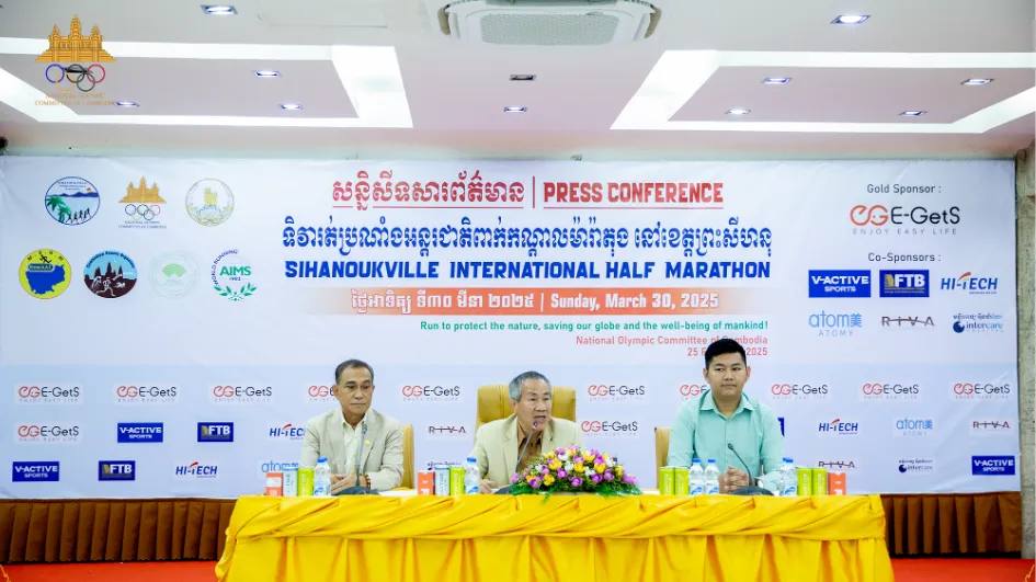 ឯកឧត្ដម វ៉ាត់ ចំរើន អគ្គលេខាធិការ គណៈកម្មាធិការជាតិ អូឡាំពិកម្ពុជា និងលោក សែម ផល្លា អ្នកជំនាញរៀបចំ ព្រឹត្តិការណ៍ម៉ារ៉ាតុង នៅកម្ពុជា បានអំពាវនាវ ដល់មហាជន ចូលរួម ទិវារត់ប្រណាំងពាក់កណ្ដាលម៉ារ៉ាតុង ខេត្តព្រះសីហនុ ឱ្យបានច្រើនកុះករ ។