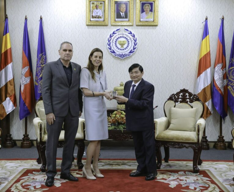 (ភ្នំពេញ)៖ ឯកឧត្តម ហេង សួរ រដ្ឋមន្ត្រីក្រសួងការងារ និងបណ្តុះបណ្តាលវិជ្ជាជីវៈ បានទទួលជំនួបសម្តែងការគួរសម និងពិភាក្សាការងារជាមួយលោកជំទាវ Orna SAGIV ឯកអគ្គរដ្ឋទូតអ៊ីស្រាអែលប្រចាំកម្ពុជា ដែលមាននិវេសនដ្ឋាននៅទីក្រុងបាងកក នារសៀលថ្ងៃទី២០ ខែកុម្ភៈ ឆ្នាំ២០២៥ នៅទីស្តីការក្រសួងការងារ និងបណ្តុះបណ្តាលវិជ្ជាជីវៈ។