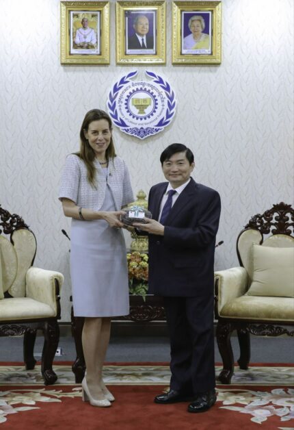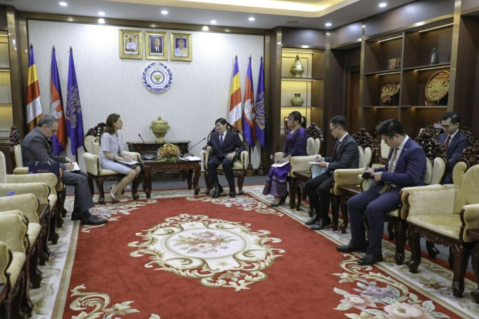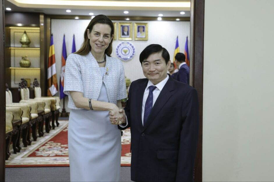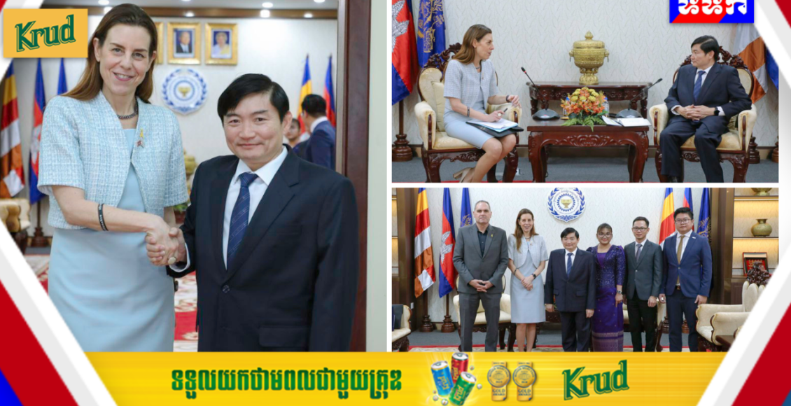 (ភ្នំពេញ)៖ ឯកឧត្តម ហេង សួរ រដ្ឋមន្ត្រីក្រសួងការងារ និងបណ្តុះបណ្តាលវិជ្ជាជីវៈ បានទទួលជំនួបសម្តែងការគួរសម និងពិភាក្សាការងារជាមួយលោកជំទាវ Orna SAGIV ឯកអគ្គរដ្ឋទូតអ៊ីស្រាអែលប្រចាំកម្ពុជា ដែលមាននិវេសនដ្ឋាននៅទីក្រុងបាងកក នារសៀលថ្ងៃទី២០ ខែកុម្ភៈ ឆ្នាំ២០២៥ នៅទីស្តីការក្រសួងការងារ និងបណ្តុះបណ្តាលវិជ្ជាជីវៈ។