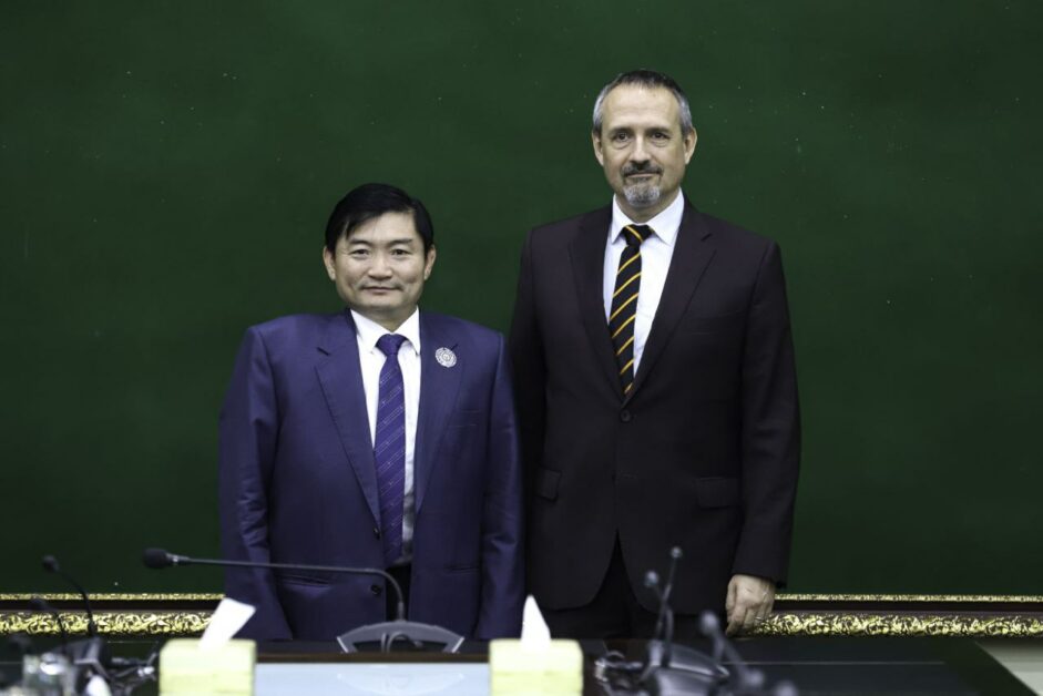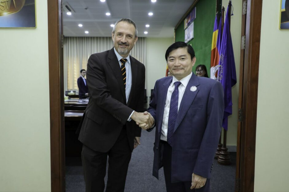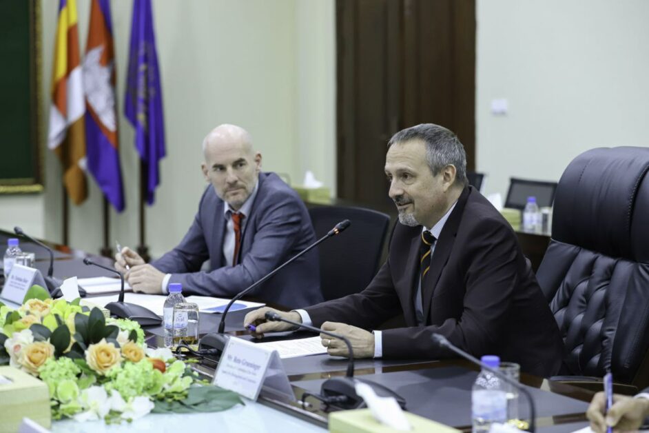 (ភ្នំពេញ)៖ ឯកឧត្តម ហេង សួរ រដ្ឋមន្ត្រីក្រសួងការងារ និងបណ្តុះបណ្តាលវិជ្ជាជីវៈ បានទទួលជួបសម្តែងការគួរសម និងពិភាក្សាការងារជាមួយគណៈប្រតិភូ ដែលដឹកនាំដោយលោក រ៉េត្រូ ហ្រ្គូនីងហ្គឺ (Reto Gruninger) នាយកការិយាល័យកិច្ចសហប្រតិបត្តិការ និងកុងស៊ុលស្វីសប្រចាំកម្ពុជា នារសៀលថ្ងៃចន្ទ ទី១០ ខែធ្នូ ឆ្នាំ២០២៤។
