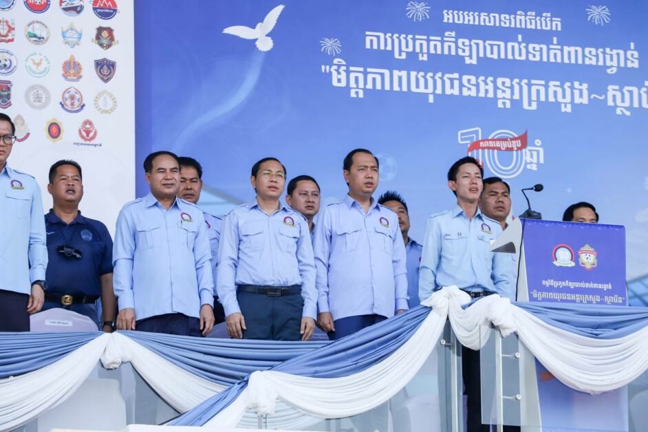ការថ្លែងរបស់ ឯកឧត្តម ហ៊ុន ម៉ានី ប្រធាន សហភាពសហព័ន្ធយុវជនកម្ពុជា ក្នុងពិធីបើកការប្រកួតកីឡាបាល់ទាត់ ពានរង្វាន់កីឡាបាល់ទាត់មិត្តភាព យុវជនអន្តរក្រសួង ស្ថាប័ន លើកទី១០ ឆ្នាំ ២០២៥ រៀបចំឡើងដោយ សហភាពសហព័ន្ធយុវជនកម្ពុជា (ស ស យ ក) នៅកីឡដ្ឋានកងយោធពលខេមរភូមិន្ទ (ស្តាតចាស់) ។