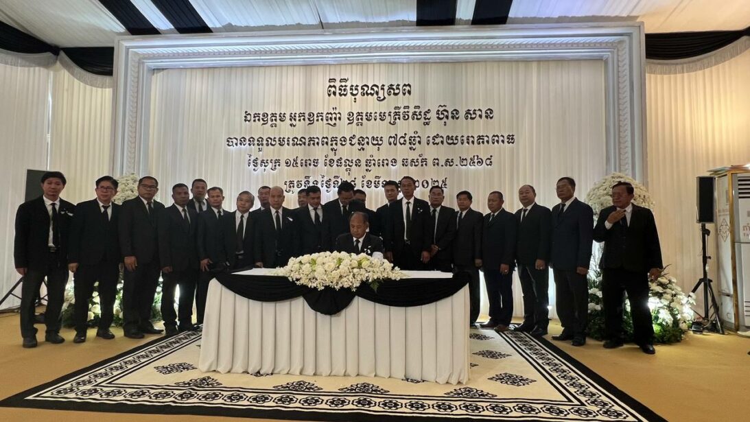 ក្នុងឱកាសចូលរួមរំលែកមរណទុកដ៍ក្រៀមក្រំជាមួយក្រុមគ្រួសារ សពឯកត្តម អ្នកអ្នកញ៉ាឧត្តមមេត្រីវិសិដ្ឋ ហ៊ុន សាន ដែលកំពុង តម្កល់ធ្វើបុណ្យ តាមប្រពៃណី នៅគេហដ្ឋាននោះ ឯកឧត្តម អ៊ំ រាត្រីដឹកនាំ គណៈប្រតិភូ រដ្ឋបាល ខេត្តបន្ទាយមានជ័យ អញ្ជើញគោរពវិញ្ញាក្ខន្ធសពឯកឧត្តម អ្នកអ្នកញ៉ាឧត្តមមេត្រីវិសិដ្ឋ ហ៊ុន សាន នៅព្រឹកថ្ងៃទី២៩ ខែមីនា ឆ្នាំ២០២៥។
