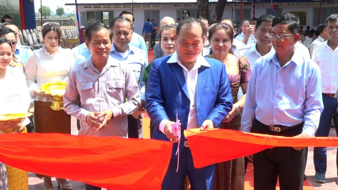 ឯកឧត្តម ឧត្តមសេនីយ៍ឯក ឃឹង សារ៉ាត់ និងលោកជំទាវ អញ្ជើញជាសម្ពោធដាក់ឲ្យប្រើសប្រាស់ជាផ្លូវការអាគារទីចាត់ការ និងសាលប្រជុំ នៃសាលាបឋមសិក្សានិងអនុវិទ្យាល័យអង្គប្រជុំ