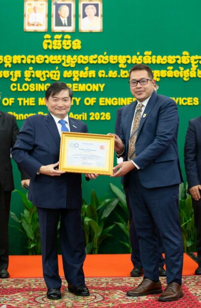 ថ្លែងក្នុងពិធីបិទវគ្គបណ្តុះបណ្តាលស្តីពី “ការបង្កភាពងាយស្រួលដល់បម្លាស់ទីសេវាវិជ្ជាជីវៈវិស្វកម្ម” នារសៀលថ្ងៃទី២ ខែមេសា ឆ្នាំ២០២៦ នៅសណ្ឋាគារកាំបូឌីយ៉ាណា ឯកឧត្តម ហេង សួរ រដ្ឋមន្ត្រីក្រសួងការងារ និងបណ្តុះបណ្តាលវិជ្ជាជីវៈ និងជាប្រធានក្រុមប្រឹក្សាគណៈវិស្វករកម្ពុជា បានលើកឡើងពីសារៈសំខាន់នៃការពង្រឹងសមត្ថភាពវិស្វករ និងកិច្ចសហប្រតិបត្តិការតំបន់ ដែលមិនត្រឹមតែជាការផ្លាស់ប្តូរបច្ចេកទេសប៉ុណ្ណោះទេ ប៉ុន្តែថែមទាំងជាឱកាសដ៏មានតម្លៃក្នុងការសិក្សាវិធីសាស្ត្រថ្មីៗក្នុងទិសដៅអភិវឌ្ឍន៍វិស័យសំណង់នៅអាស៊ាន។