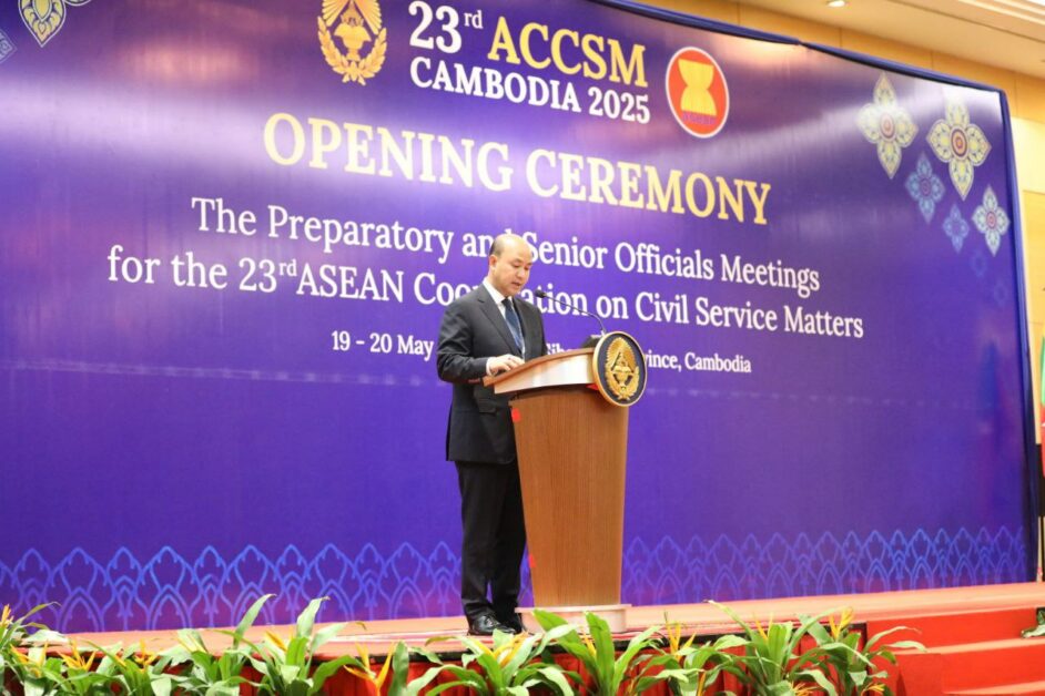ព្រឹកថ្ងៃទី១៩ ខែឧសភា ឆ្នាំ ២០២៥ ឯកឧត្តម ហ៊ុន ម៉ានី ឧបនាយករដ្ឋមន្ត្រី រដ្ឋមន្ត្រីក្រសួងមុខងារសាធារណៈ បានអញ្ជើញជាអធិបតីដ៏ខ្ពង់ខ្ពស់ក្នុងពិធីបើក «កិច្ចប្រជុំត្រៀម និងកិច្ចប្រជុំមន្ដ្រីជាន់ខ្ពស់ កិច្ចសហប្រតិបត្តិការអាស៊ាន ស្ដីពីកិច្ចការមុខងារសាធារណៈ ASEAN Cooperation on Civil Service Matters(ACCSM) » និងមានសមាសភាព ចូលរួមជាមន្ត្រីជាន់ខ្ពស់ដែលពាក់ព័ន្ធកិច្ចការមុខងារសាធារណៈ នៃបណ្តាប្រទេសអាស៊ាន និងប្រទេសដែលជាដៃគូសន្ទនា កិច្ចប្រជុំដ៏មានសារៈសំខាន់ ដែលដឹកនាំរៀបចំដោយ ក្រសួងមុខងារសាធារណៈ នៃព្រះរាជាណាចក្រកម្ពុជា គឺមានរយៈពេល២ថ្ងៃ គឺចាប់ពីថ្ងៃទី ១៩-២០ ខែឧសភា ឆ្នាំ២០២៥ នៅខេត្តព្រះសីហនុ ក្រោមមូលបទ «នវានុវត្តន៍សម្រាប់ការផ្តល់សេវាសាធារណៈឱ្យកាន់តែប្រសើរឡើង» ។