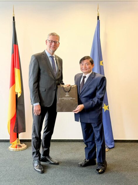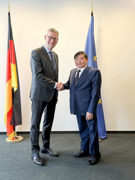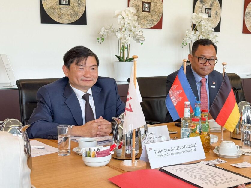នៅក្នុងឱកាសនោះ ប្រតិភូបានជួបពិភាក្សាការងារជាមួយលោក ថស៍ស្ទីន ហ្សាវហ្វឺ ហ្គាមបល (Thorsten Schafer Gumbel) ប្រធានក្រុមប្រឹក្សាភិបាលនៃទីភ្នាក់ងារសហប្រតិបត្តិការអាល្លឺម៉ង់ (GIZ) ដែលនៅក្នុងជំនួបនោះភាគីទាំងពីរបានរំលឹកពីចំណងមិត្តភាពការទូតដ៏យូរលង់ និងកិច្ចសហប្រតិបត្តិការដ៏ល្អរវាងកម្ពុជា និងអាល្លឺម៉ង់។ ភាគីទាំងពីរក៏បានឯកភាពគ្នាក្នុងការបន្តពង្រឹងកិច្ចសហប្រតិបត្តិការលើវិស័យការងារ សន្តិសុខសង្គម និងបណ្តុះបណ្តាលវិជ្ជាជីវៈ ជាពិសេសលើការលើកកម្ពស់ការអភិវឌ្ឍជំនាញ ដែលជាកត្តាចាំបាច់សម្រាប់កម្ពុជាក្នុងការបន្តរក្សាបាននូវភាពប្រកួតប្រជែងនៅពេលកម្ពុជាបានចាកចេញពីប្រទេសអភិវឌ្ឍតិចតួច (LDC)។