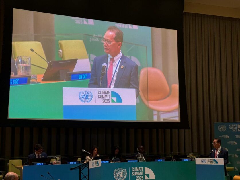 នាថ្ងៃទី២៤ ខែកញ្ញា ឆ្នាំទី២០២៥ នៅទីស្នាក់កណ្តាលអង្គការសហប្រជាជាតិនៅទីក្រុងញូយ៉ក សហរដ្ឋអាមេរិក ឯកឧត្តមបណ្ឌិត អ៊ាង សុផល្លែត រដ្ឋមន្ត្រីក្រសួងបរិស្ថាន តំណាងដ៏ខ្ពង់ខ្ពស់ សម្តេចមហាបរវរធិបតី ហ៊ុន ម៉ាណែត នាយករដ្ឋមន្ត្រីនៃព្រះរាជាណាចក្រកម្ពុជា បានសនិ្នសិទអាកាសធាតុ និងបានថ្លៃងបញ្ជាក់ អំពីគោលជំហររាជរដ្ឋាភិបាល ក្នុងការចូលរួមជាមួយសហគមន៍អន្តរជាតិប្រយុទ្ធប្រឆាំងនឹងការប្រែប្រួលអាកាសធាតុ ។