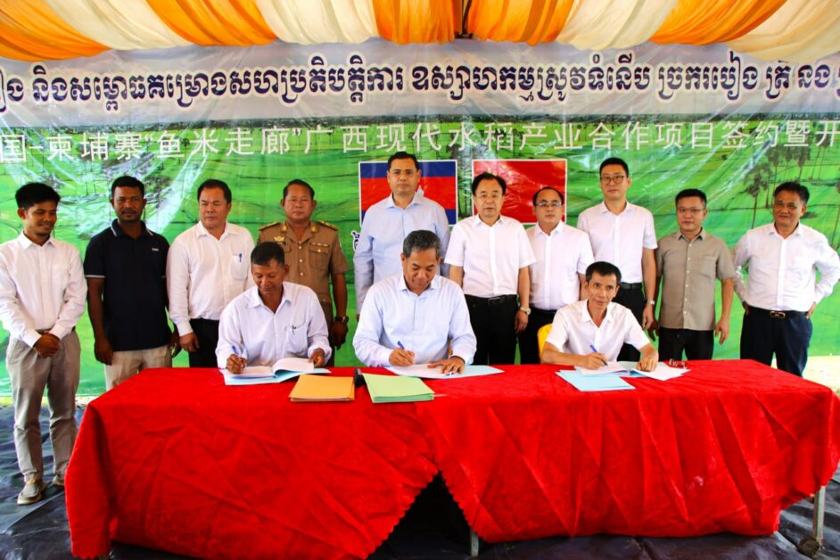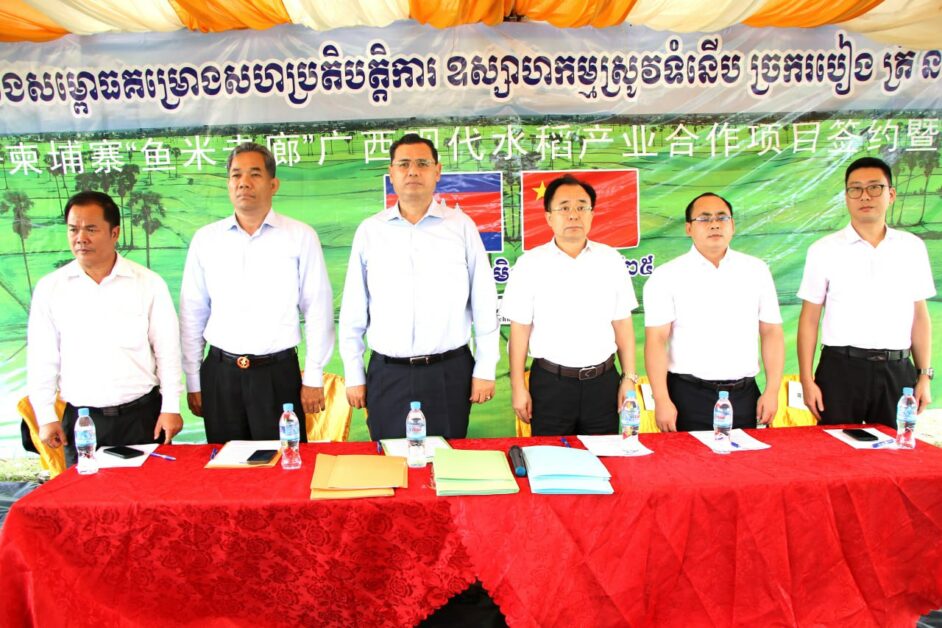 កម្ពុជា និងខេត្តក្វាងស៊ី ប្រទេសចិន បានព្រមព្រៀង និងសម្ភោធគម្រោងសហប្រតិបត្តិការ ឧស្សាហកម្មស្រូវទំនើប ច្រករបៀងមច្ឆា និងអង្ករ ចិន ជាផ្លូវការហើយ