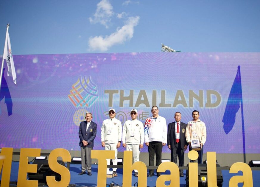 ប្រតិភូគ្រូបង្វឹក កីឡាករ កីឡាការិនីកម្ពុជា ដឹកនាំដោយ ឯកឧត្តម វ៉ាត់ ចំរើន រដ្ឋលេខាធិការ ក្រសួងអប់រំយុវជននិងកីឡា និងជាអគ្គលេខាធិការគណៈកម្មាធិការជាតិ អូឡាំពិកកម្ពុជា និងឯកឧត្តម ប៉ុន សុខ អគ្គនាយក នៃអគ្គនាយកដ្ឋានកីឡា បានចូលរួម គោរពទង់ជាតិ ក្នុងព្រឹត្តិការណ៍កីឡាស៊ីហ្គេម លើកទី៣៣ ដែលប្រទេសថៃ ទទួលធ្វើជាម្ចាស់ផ្ទះ។