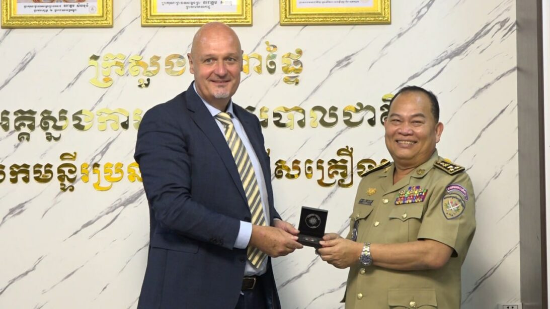 ភ្នំពេញ៖ ឯកឧត្តម ឧត្តមសេនីយ៍ឯក ឃឹង សារ៉ាត់ នាយកមន្ទីរប្រឆាំងបទល្មើសគ្រឿងញៀន នៃអគ្គស្នងការដ្ឋាននគរបាលជាតិ បានជួបពិភាក្សាការងារជាមួយលោក RALF KOCH មន្ត្រីអនុព័ន្ធនគរបាលថ្មី នៃស្ថានទូតស្វីស ប្រចាំនៅទីក្រុងបាងកក។ ជំនួបនេះធ្វើឡើងក្នុងគោលបំណងដើម្បីឧទ្ទេសនាមខ្លួនទៅវិញទៅមក និងពង្រឹងកិច្ចសហប្រតិបត្តិការរវាងកងកម្លាំងនគរបាលនៃប្រទេសទាំងពីរ ជាពិសេសលើការងារប្រយុទ្ធប្រឆាំងនឹងបទល្មើសគ្រឿងញៀន។