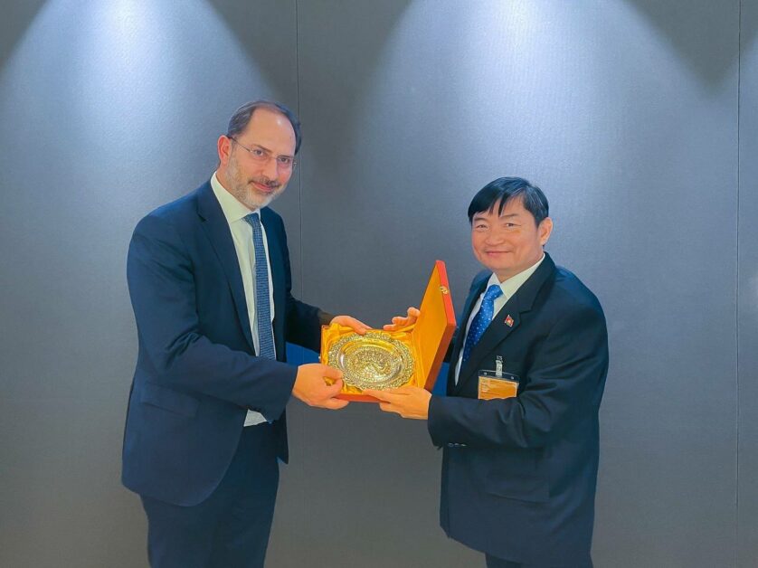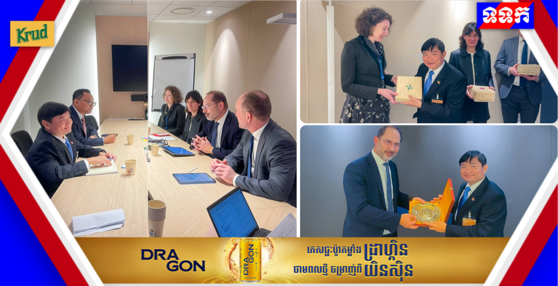 ឯកឧត្តម ហេង សួរ រដ្ឋមន្ត្រីក្រសួងការងារ និងបណ្តុះបណ្តាលវិជ្ជាជីវៈ និងលោក អង់តូនីញូ ហ្គោមេស៍ (Antonio Gomes) នាយករងនៃអគ្គនាយកដ្ឋានកិច្ចការហិរញ្ញវត្ថុនិងសហគ្រាស នៃអង្គការសម្រាប់កិច្ចសហប្រតិបត្តិការ និងអភិវឌ្ឍន៍សេដ្ឋកិច្ច (OECD) បានជួបប្រជុំទ្វេភាគីនៅទីស្នាក់ការអង្គការ OECD ក្នុងឱកាសដែលឯកឧត្តមរដ្ឋមន្រ្តីដឹកនាំគណៈប្រតិភូត្រីភាគីចូលរួមវេទិកាអង្គការ OECD ស្តីពីការត្រួតពិនិត្យអនុលោមភាពនៅក្នុងវិស័យកាត់ដេរ និងផលិតផលស្បែកជើង នាថ្ងៃទី១១ ខែកុម្ភៈ ឆ្នាំ២០២៦ ក្នុងទីក្រុងប៉ារីស ប្រទេសបារាំង។