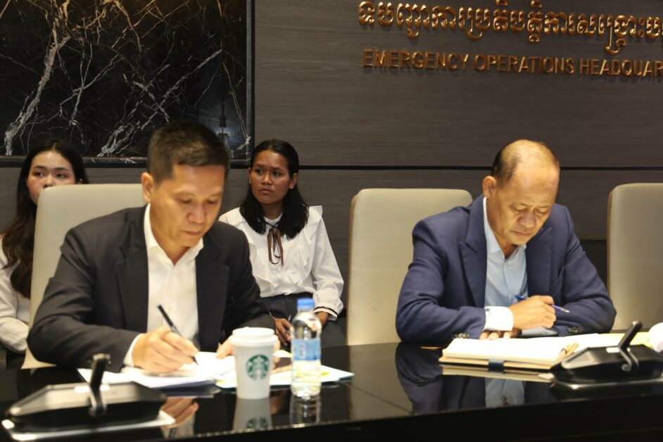 ភ្នំពេញ: នៅព្រឹកថ្ងៃទី៨ ខែឧសភា ឆ្នាំ២០២៥ ឯកឧត្តមកិត្តិសង្គហបណ្ឌិត គន់ គីម ទេសរដ្ឋមន្ត្រី អនុប្រធានទី១ គណៈកម្មាធិការជាតិគ្រប់គ្រងគ្រោះមហន្តរាយ(គ.ជ.គ.ម.) បានអញ្ជើញដឹកនាំកិច្ចប្រជុំស្តីពីការត្រៀមរៀបចំកិច្ចប្រជុំ គណៈកម្មការគ្រប់គ្រងគ្រោះមហន្តរាយ អាស៊ាន លើកទី៤៦ និងកិច្ចប្រជុំពាក់ព័ន្ធ នាពេលខាងមុខ នៅខេត្តសៀមរាប។ ដោយមានការអញ្ជើញចូលរួមពីថ្នាក់ដឹកនាំ និងមន្ត្រីបច្ចេកទេសពាក់ព័ន្ធ នៅទីស្តីការគណៈកម្មាធិការជាតិគ្រប់គ្រងគ្រោះមហន្តរាយ។