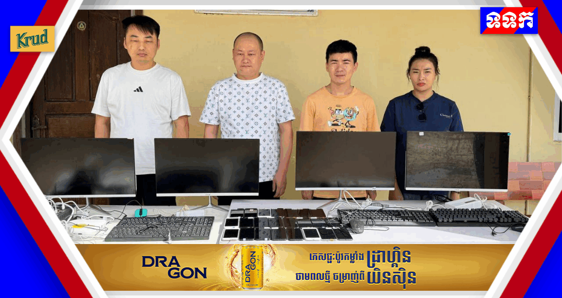 កម្លាំងចម្រុះនៃគណ:បញ្ជាការឯកភាពរដ្ឋបាលខេត្តសៀមរាបឃាត់ខ្លួនជនសង្ស័យចំនួន៤នាក់ពាក់ព័ន្ធនឹងបទល្មើសឆបោកតាមប្រព័ន្ធបច្ចេកវិទ្យា