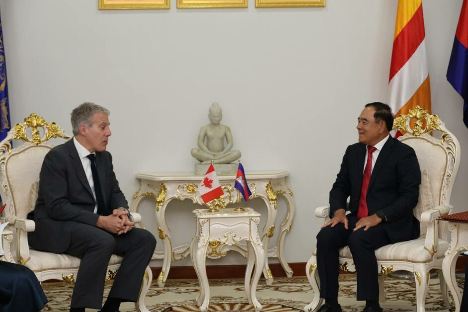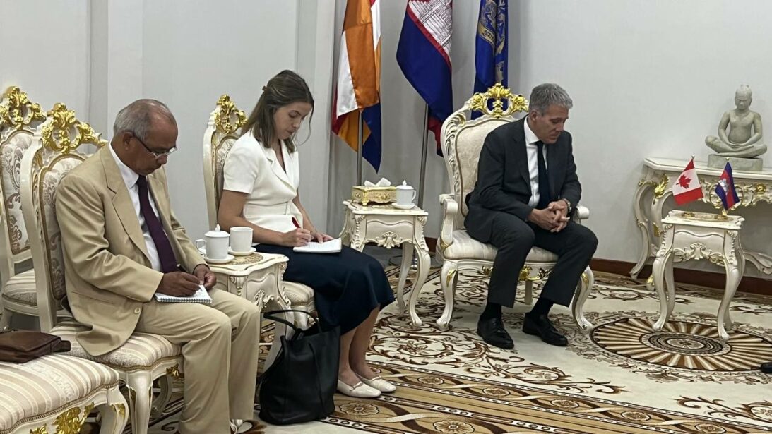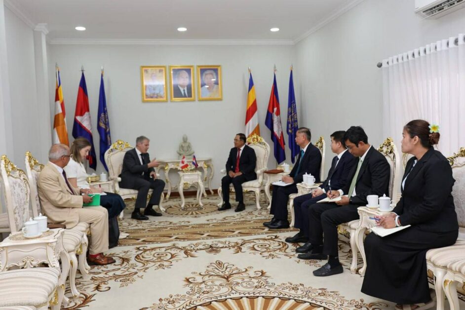 ឯកឧត្តមបណ្ឌិត លី ធុជ ទេសរដ្ឋមន្រ្តី អនុប្រធានទី១ អាជ្ញាធរមីន បានទទួលជួបពិភាក្សាការងារជាមួយ ឯកឧត្តម Christian Angelo DesRoches ឯកអគ្គរដ្ឋទូតកាណាដាប្រចាំព្រះរាជាណាចក្រកម្ពុជា និងសហការី នាថ្ងៃទី១៥ ខែធ្នូ ឆ្នាំ២០២៥ នៅទីស្នាក់ការអាជ្ញាធរមីន រាជធានីភ្នំពេញ។