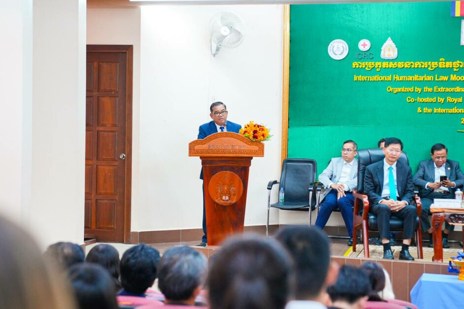 នៅរសៀលថ្ងៃទី២៨ ខែវិច្ឆិកា ឆ្នាំ២០២៥ ឯកឧត្តម ថោង សុជាតិ រដ្ឋលេខាធិការទីស្តីការ គណៈរដ្ឋមន្ត្រី និងជាមន្រ្តីគ្រប់គ្រងជាន់ខ្ពស់នៃ អ.វ.ត.ក. តំណាងរបស់ឯកឧត្តម ហែម ក្រាញ់តូនី រដ្ឋលេខាធិការទីស្តីការគណៈរដ្ឋមន្ត្រី និងជាប្រធានរដ្ឋបាលស្តីទី អ.វ.ត.ក. បាន អញ្ជើញជាអធិបតីក្នុងប្រកាសបើកកម្មវិធីប្រកួតសវនាការប្រឌិតថ្នាក់ជាតិស្តីពីនីតិ មនុស្សធម៌អន្តរជាតិឆ្នាំ២០២៥។ ពិធីនេះបានរៀបចំឡើងនៅសាកិលវិទ្យាល័យ ភូមិន្ទនីតិសាស្ត្រ និងវិទ្យាសាស្ត្រសេដ្ឋកិច្ច ។