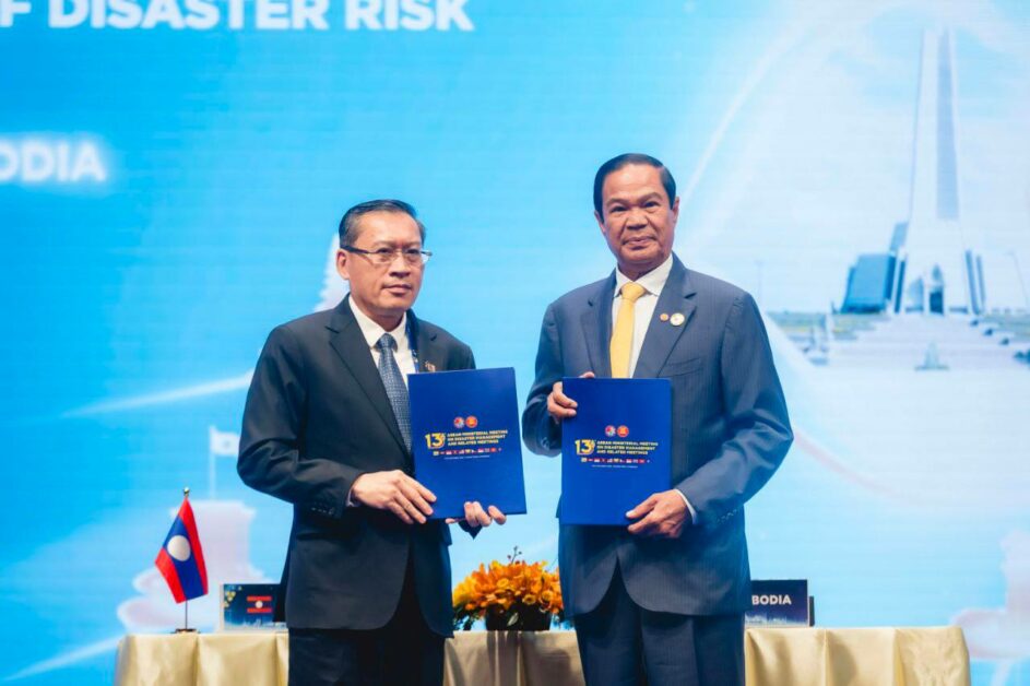 ដោយឡែក ឯកឧត្តម ទេសរដ្ឋមន្រ្តី គន់ គីម អនុប្រធានទី១ គណៈកម្មាធិការគ្រប់គ្រងគ្រោះមហន្តរាយ និង ឯកឧត្តម PHOSAY SAYASONE រដ្ឋមន្រ្តីក្រសួងការងារ និងសុខុមាលភាពសង្គមឡាវ បានអញ្ជើញចុះហត្ថលេខាលើអនុស្សារណៈនៃការយោគយល់គ្នារវាងកម្ពុជា និងឡាវ៕
