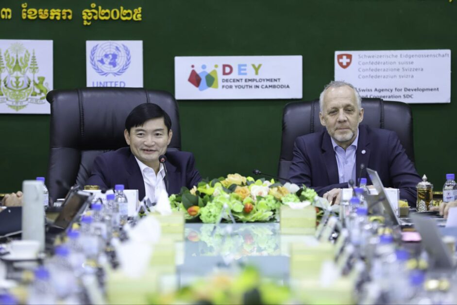 គណៈប្រឹក្សាភិបាល នៃកម្មវិធីមុខរបរនិងការងារសមរម្យរបស់យុវជននៅកម្ពុជា ដំណាក់កាលទី៣ (DEY III : Decent Employment for Youth in Cambodia Programme Phase 3) បានរៀបចំកិច្ចប្រជុំលើកទី១ នាថ្ងៃទី២៣ ខែមករា ឆ្នាំ២០២៥ ក្រោមអធិបតីភាព ឯកឧត្តម ហេង សួរ រដ្ឋមន្ត្រីក្រសួងការងារ និងបណ្តុះបណ្តាលវិជ្ជាជីវៈ និងលោក Joseph Scheuer អ្នកសម្របសម្រួលនៃអង្គការសហប្រជាជាតិប្រចាំកម្ពុជា ដោយមានវត្តមានចូលរួមពីតំណាងអន្តរក្រសួង, តំណាងអង្គការអន្តរជាតិ ទីភ្នាក់ងារនៃអង្គការសហប្រជាជាតិ, ទីភ្នាក់ងារស្វីសសម្រាប់ការអភិវឌ្ឍ និងកិច្ចសហប្រតិបត្តិការ (SDC), និងតំណាងសមាគមនិយោជក។