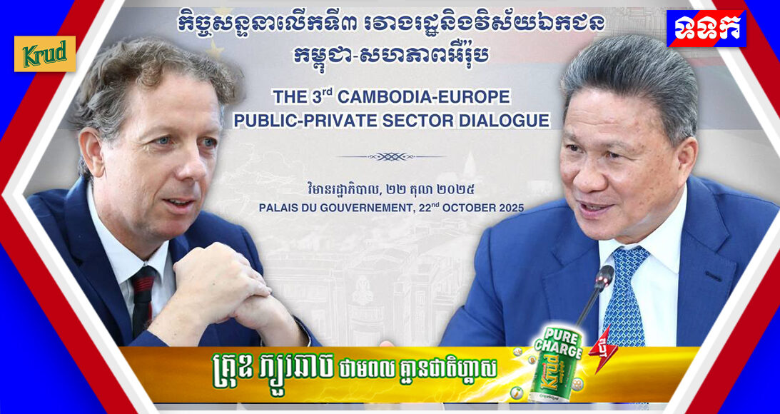 កិច្ចសន្ទនាលើកទី៣ រវាងរដ្ឋនិងវិស័យឯកជន កម្ពុជា-សហភាពអឺរ៉ុប នាព្រឹកនេះ បានប្រព្រឹត្តទៅដោយរលូនតាមរបៀបវារៈដែលបានគ្រោងទុក ដោយបានលើកយកប្រធានបទជាអាទិភាពមកពិភាក្សាយ៉ាងផុសផុលពាក់ព័ន្ធនឹងបរិយាកាសវិនិយោគ និងការធ្វើធុរកិច្ចនៅកម្ពុជា របស់វិនិយោគិនអឺរ៉ុប សំដៅបន្តពង្រឹងវឌ្ឍនភាពដែលសម្រេចបាននៅក្នុងកិច្ចប្រជុំពីរលើកកន្លងមក។