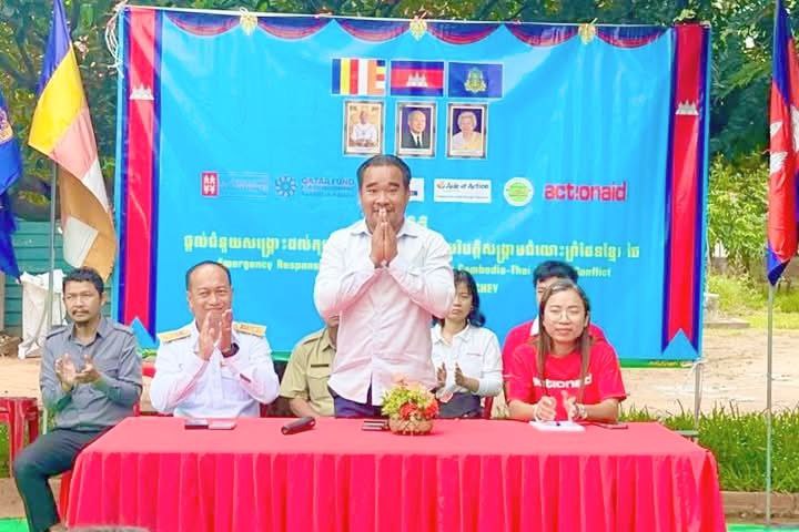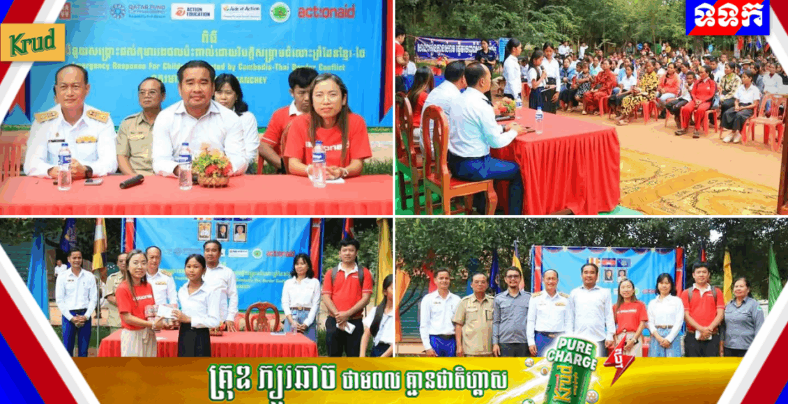 អង្កការកែប្រែសហគមន៍(CTO) បានរៀបចំកម្មវិធីចែកជំនួយសង្គ្រោះ (ស្បៀង សម្ភារៈ និងសាច់ប្រាក់)ដល់កុមារ ចំនួន ១៦០៣នាក់ ក្នុងគម្រោងដែល រងផលប៉ះពាល់ពីបញ្ហាសង្គ្រាម ពិធីនេះរៀបចំឡើង នៅសាលាបឋមសិក្សាថ្នល់បត់ ភូមិថ្នល់បត់ សង្កាត់កូនក្រៀល ក្រុងសំរោង នៃខេត្តឧត្តរមានជ័យ លោក យិញ យ៉ា នាយកប្រតិបត្តិអង្គការកែប្រែសហគមន៍ CTOបានមានប្រសាសន៍បញ្ជាក់ថា ការរៀបចំកម្មវិធីចែកជំនួយសង្គ្រោះ (ស្បៀង សម្ភារៈនិងសាច់ប្រាក់) ដល់កុមារនាពេលនេះក្នុងគោលបំណងរួមចំណែកជួយកុមារ និងគ្រួសារកុមារឲ្យទទួលបានស្បៀងសម្រាលការខ្វះខាតជីវភាព និងលើកកំពស់សុខុមាលភាព។ជាការួមចំណែកជួយកុមារដែលមានជីវភាពខ្វះខាត់ទទួលបាននូវសម្ភារៈសិក្សាដើម្បីទទួលបានឧិកាសសិក្សាដ៏សមស្រប។ លោកបញ្ជាក់បន្តថា អង្គការកែប្រែសហគមន៍(CTO) កំពុងអនុវត្តគម្រោងកម្មវិធីសិទ្ធិមូលដ្ឋាន(Local Right Program) និងគម្រោងផ្តល់ឧិកាសសិក្សាដល់កុមារក្រៅសាលា (OOSC)។គម្រោងនេះធ្វើការជាដៃគូជាមួយអង្គការ ActionAid និង អង្គការ Aid et Action ក្នុងខេត្តយុទ្ធសាស្ត្រចំនួន៥ គឺខេត្តឧត្តរមានជ័យ កំពង់ធំ ពោធិ៍សាត់ កោះកុង និងខេត្តកំពត។ ជាមួយនឹងអង្គការដៃគូរចំនួន១២ ដែលអនុវត្តគម្រោងតាមបណ្តាខេត្តទាំង៥ខាងលើ លោកស្រី ចាន់ សោភ័ណ្ឌ ប្រធានកម្មវិធី អង្គការ អាក់សិនអេត បានមានប្រសាសន៍ថាក្រោយផ្ទុះអាវុធ ថ្ងៃទី២៤ កក្កដា ២០២៥ ដោយបញ្ហាជំលោះព្រំដែនកម្ពុជា-ថៃ មានប្រជាពលរដ្ឋរាប់ម៉ឺនគ្រួសារបានជំលៀសចេញពីលំនៅដ្ឋានដើម្បីសុវត្ថិភាព ដែលខ្លះស្នាក់នៅជំរុំសុវត្ថិភាពស្នាក់នៅបណ្តោះអាសន្នដែលអាជ្ញាធររៀបចំក្នុង និងក្រៅខេត្តហើយមួយចំនួនទៀតបានទៅស្នាក់នៅបណ្តោះអាសន្នតាមផ្ទះសាច់ញាតិ។ ដោយសារការរត់ភៀសខ្លួនយ៉ាងកំហុក ហើយស្ថានភាពតានតឹងតាមបន្ទាត់ព្រំដែននៅបន្តអូសបន្លាយជាច្រើនខែ បើទោះបីជាមានបទឈប់បាញ់បានរៀបចំឡើងក្នុង ថ្ងៃទី២៨ កក្កដា ឆ្នាំ២០២៥ ក៏ដោយ។ លោកស្រីបន្តថា ទន្ទឹមគ្នានេះផងដែរ យើងក៏តែងតែបានចូលរួមជាមួយរាជរដ្ឋាភិបាល ជាពិសេសជាមួយរដ្ឋបាលថ្នាក់ក្រោមជាតិធ្វើការងារឆ្លើយតបទៅនឹងបញ្ហាគ្រោះមហន្តរាយនេះបានជាបន្តបន្ទាប់។ លោក ប៉ិច រតនា ប្រធានមន្ទីរអប់រំយុវជននិងកីឡាខេត្តឧត្តរមានជ័យបានធ្វើការថ្លែងនៅអំណរគុណ ចំពោះអង្កការកែប្រែសហគមន៍ (CTO) និងអង្គកាជាដៃគូ ជាពិសេស អង្គការ អាក់សិនអេត និងអង្គការអេត អេអាក់ស្យុង ដែលបានរួមគ្នាឆ្លើយតបនូវតម្រូវបន្ទាន់៣លើករួចមកហើយ រហូតទៅដល់គ្រួសារដែលស្នាក់នៅក្នុងជំរុំវត្តថ្មកំបោរ និងវត្តបាត់ថ្កៅដែលមានជាសម្ភារៈប្រើប្រាស់ស្បៀង និងសាច់ប្រាក់ក៏ដូចជាសម្ភារៈស្តុកទឹកស្អាត អនាម័យ និងជាសម្ភារៈសិក្សាកុមារ ដែលបានអនុវត្តនាពេលកន្លងមក និងជាក់ស្ដែងបានបន្តចែកជ