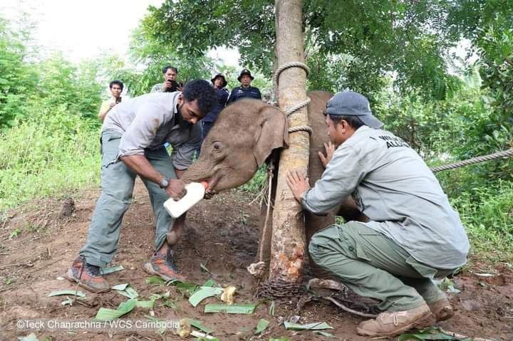 ក្រោយទទួលបានដំណឹង ក្រុមការងារអង្គការសមាគមអភិរក្សសត្វព្រៃ WCS Cambodia បានចុះទៅពិនិត្យ និងតាមដានស្ថានភាពកូនដំរីព្រៃ១ក្បាលនេះ។ ដោយកូនដំរីមានស្ថានភាពស្គម និងបាក់ទឹកដោះ ក្រុមការងារអង្គការWCS បានសហការជាមួយក្រុមការងារអង្គការ WWF, WA ក្នុងការផ្តល់ចំនី និងទឹកដោះគោ ដើម្បីអាចអោយកូនដំរីនេះមានកំលាំង និងអាហារគ្រប់គ្រាន់។
