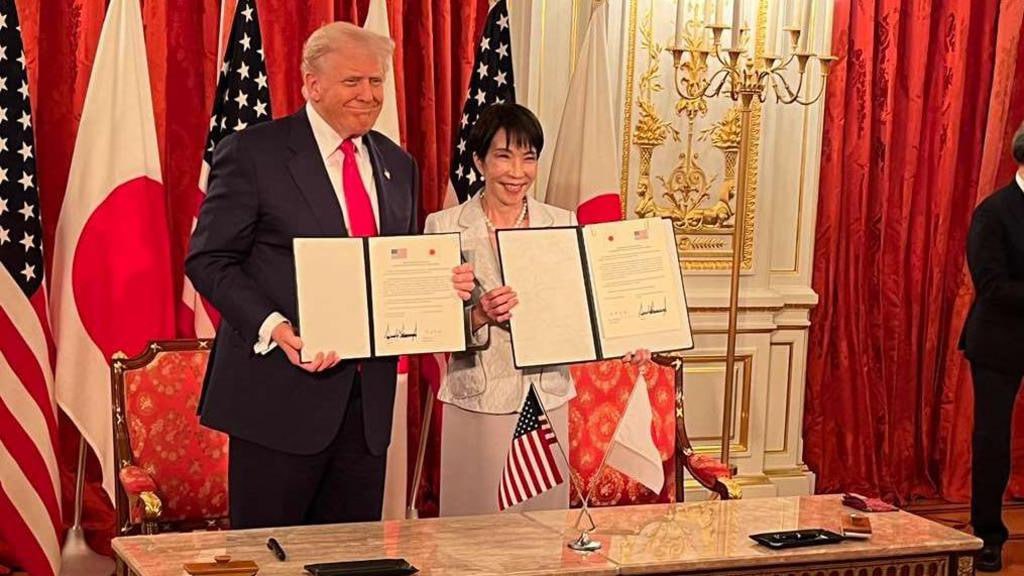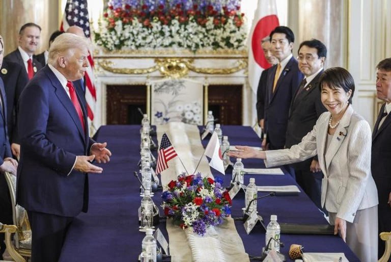 នៅថ្ងៃអង្គារ៍នេះលោកប្រធានាធិបតី Donald Trump ត្រូវបានស្វាគមន៍យ៉ាងកក់ក្តៅសម្រាប់ដំណើរទស្សនកិច្ចនៅប្រទេសជប៉ុន ដោយលោកស្រីនាយករដ្ឋមន្ត្រីថ្មីរបស់ជប៉ុនដោយ គឺលោកស្រី Sanae Takaichi នៅថ្ងៃដំបូងក្នុងប្រទេសជប៉ុននេះទៀតសោត ជាទស្សនកិច្ចដ៏មមាញឹករបស់លោក Trump ក្នុងគម្រោងជួបសំណេះសំណាលជាមួយកងទ័ពអាមេរិកនៅលើនាវាផ្ទុកយន្តហោះ និងជួបជាមួយមេដឹកនាំធុរកិច្ចនៅពេលក្រោយទៀត។ ទោះបីជាលោក Trump កំពុងធ្វើទស្សនកិច្ចជាលក្ខណៈសម្ព័ន្ធមិត្តដ៏រឹងមាំបំផុតមួយរបស់សហរដ្ឋអាមេរិកនៅតំបន់អាស៊ីក៏ដោយ ក៏មានមតិលើកឡើងនៃភាពមិនប្រាកដប្រជាជាច្រើនជុំវិញដំណើរទស្សនកិច្ចរបស់លោកដែរ។ លោកស្រី Sanae Takaichi បានក្លាយជានាយករដ្ឋមន្ត្រីស្ត្រីដំបូងគេរបស់ប្រទេសនេះកាលពីប៉ុន្មានថ្ងៃមុន ដែលមានតួនាទីត្រូវតែពង្រឹងទំនាក់ទំនងរបស់លោកស្រីជាមួយនឹងលោក Trump ដើម្បីការពារផលប្រយោជន៍សេដ្ឋកិច្ចរបស់ប្រទេសជប៉ុន។ លោក Trump កំពុងព្យាយាមកំណត់ការវិនិយោគរបស់ជប៉ុនចំនួន ៥៥០ ប៊ីលានដុល្លារអាម៉េរិកជាផ្នែកមួយនៃកិច្ចព្រមព្រៀងពាណិជ្ជកម្មរបស់ពួកគេ។ មេដឹកនាំទាំងពីរបានចុះហត្ថលេខាលើការអនុវត្តកិច្ចព្រមព្រៀងសម្រាប់ “យុគសម័យកាលមាស” នៃសម្ព័ន្ធភាពរបស់ប្រទេសទាំងពីរ។ បន្ទាប់ពីឯកសារនេះត្រូវបានផ្អាកចុះហត្ថលេខា ហើយវាត្រូវបានបញ្ជាក់ជាថ្មីក្នុងក្របខ័ណ្ឌមួយ មុនពេលដែលសហរដ្ឋអាមេរិកនឹងយកពន្ធលើទំនិញនាំចូលពីប្រទេសជប៉ុនក្នុងអត្រា១៥% និងការបង្កើតមូលនិធិចំនួន ៥៥០ប៊ីលានដុល្លារអាម៉េរិកនោះសម្រាប់ប្រទេសជប៉ុនដើម្បីវិនិយោគនៅសហរដ្ឋអាមេរិកដែរ។ បន្ទាប់មកលោក Trump និងលោកស្រី Takaichi បានចុះហត្ថលេខាលើកិច្ចព្រមព្រៀងទីពីរ ដើម្បីដាក់ចេញនូវក្របខ័ណ្ឌថ្មីរវាងសហរដ្ឋអាមេរិក-ជប៉ុនសម្រាប់ការធានាដល់ការផ្គត់ផ្គង់រ៉ែសំខាន់ៗ និងធនធានកម្រ។ បន្តមកមេដឹកនាំទាំងពីរក៏បានជួបជាមួយក្រុមគ្រួសារជនជាតិជប៉ុនដែលធ្លាប់ត្រូវបានកូរ៉េខាងជើងចាប់ពង្រត់ក្នុងទសវត្សរ៍ឆ្នាំ ១៩៧០និង ១៩៨០ ដែលលោកក៏ធ្លាប់បានជួបម្តងរួចហើយ កាលពីអាណត្តិទី១របស់លោកផងដែរ ដោយលោក Trump បាននិយាយទៅកាន់ក្រុមសាច់ញាតិទាំងនោះថា “ខ្ញុំនៅចាំទឹកមុខដ៏ស្រស់ស្អាតរបស់ពួកគេទាំងនេះ។ ខ្ញុំនឹងនៅជាមួយពួកគេជានិច្ច ហើយសហរដ្ឋអាមេរិកក៏នឹងនៅជាមួយពួកគេរហូតដែរ៕