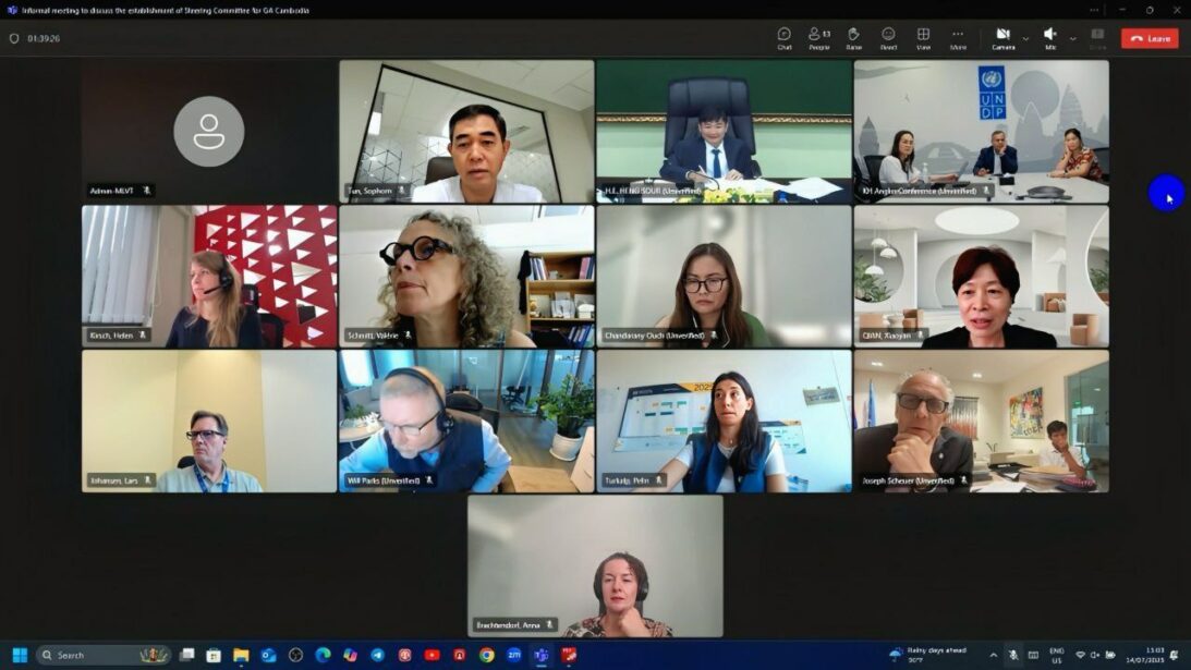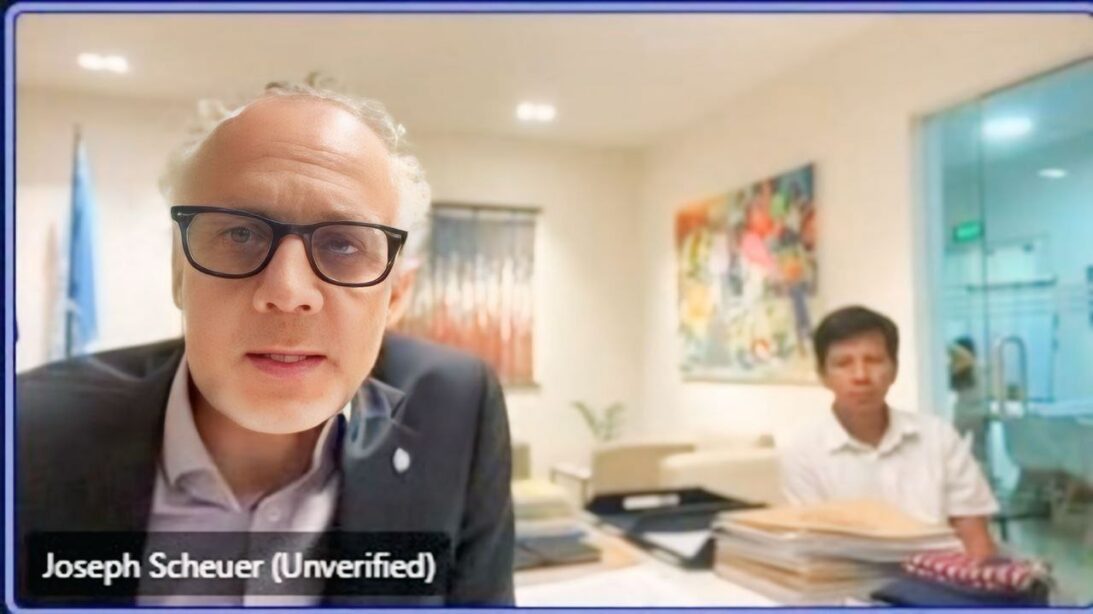 ឯកឧត្តម ហេង សួរ រដ្ឋមន្ត្រីក្រសួងការងារ និងបណ្តុះបណ្តាលវិជ្ជាជីវៈ នារសៀលថ្ងៃចន្ទ ទី១៤ ខែកក្កដា ឆ្នាំ២០២៥ បានអញ្ជើញចូលរួមកិច្ចប្រជុំពិភាក្សាតាមរយៈប្រព័ន្ធអនឡាញ (Zoom) ជាមួយលោក Joseph Scheuer អ្នកសម្របសម្រួលអង្គការសហប្រជាជាតិប្រចាំប្រទេសកម្ពុជា ស្តីពី «កាតាលីករសកលស្តីពីការងារសមរម្យ និងការគាំពារសង្គមសម្រាប់អន្តរកាលយុត្តិធម៌» នៅទីស្តីការក្រសួង។