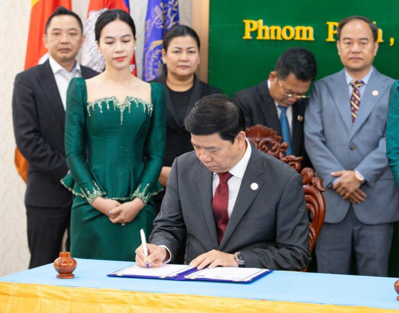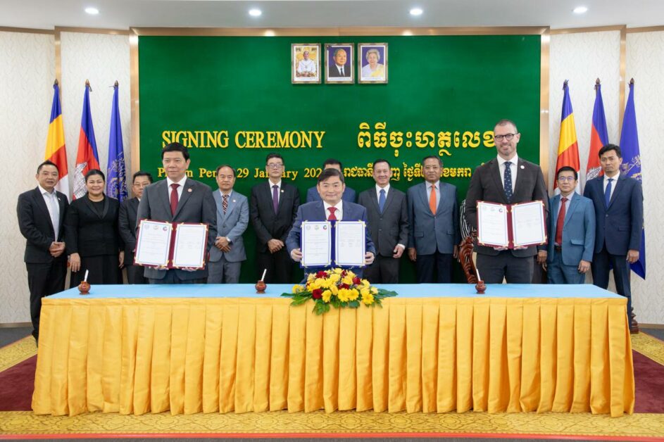 ឯកឧត្ដម ហេង សួរ រដ្ឋមន្ត្រីក្រសួងការងារ និងបណ្ដុះបណ្ដាលវិជ្ជាជីវៈ លោក តាំង សិទ្ធី ប្រធានការិយាល័យតំណាងសភាពាណិជ្ជកម្មកម្ពុជាប្រចាំទីក្រុងម៉ែលប៊ន និងលោក Jeremy Crawford នាយកប្រតិបត្តិសភាពាណិជ្ជកម្មប្រចាំទីក្រុងហ្គីឡុង នៃរដ្ឋវីតូរីយ៉ា ប្រទេសអូស្ត្រាលីបានចុះអនុស្សរណៈនៃការយោគយល់គ្នា ស្តីពី «សហប្រតិបត្តិការនៅក្នុងការផ្លាស់ប្តូរជំនាញ ការបណ្ដុះបណ្ដាលសិស្សហ្វឹកហាត់ និងការហ្វឹកហាត់ការងារ» នាព្រឹកថ្ងៃទី២៩ ខែមករា ឆ្នាំ២០២៦ នាទីស្តីការក្រសួង។