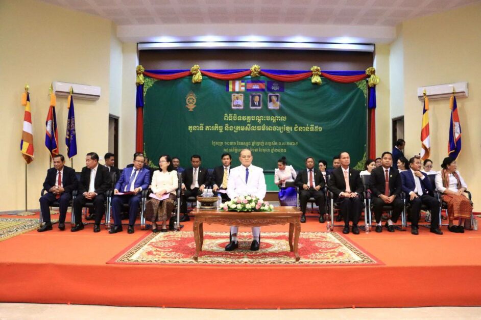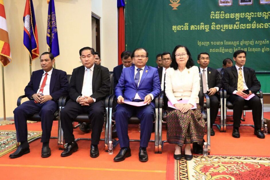 សូមជម្រាបជូនថា ពិធីបិទវគ្គបណ្ដុះបណ្ដាលស្ដីពី តួនាទី ភារកិច្ចនិងក្រមសីលធម៌អាចារ្យខ្មែរជំនាន់ទី ៥១ ដោយមានការនិមន្ត និងអញ្ជើញចូលរួមពីសំណាក់ឯកឧត្តម លោកជំទាវថ្នាក់ដឹកនាំក្រសួងធម្មការនិងសាសនា សិក្ខាកាមជាព្រះមន្រ្តីសង្ឃ អាចារ្យ អាចារ្យនី មកពីរាជធានី-ខេត្ត ចំនួន២២៧ អង្គ/នាក់ក្នុងនោះព្រះសង្ឃ៣២អង្គ និងស្រ្តី៣នាក់  នារសៀលថ្ងៃទី១៧ ខែតុលា ឆ្នាំ២០២៥ នៅទីស្តីការក្រសួង ៕